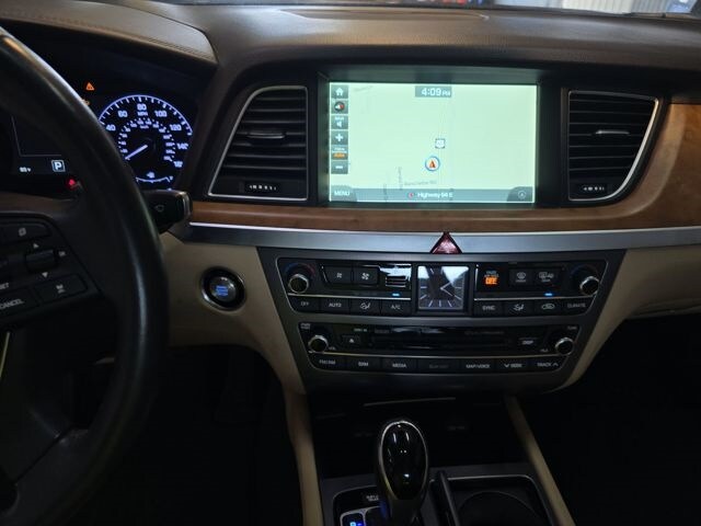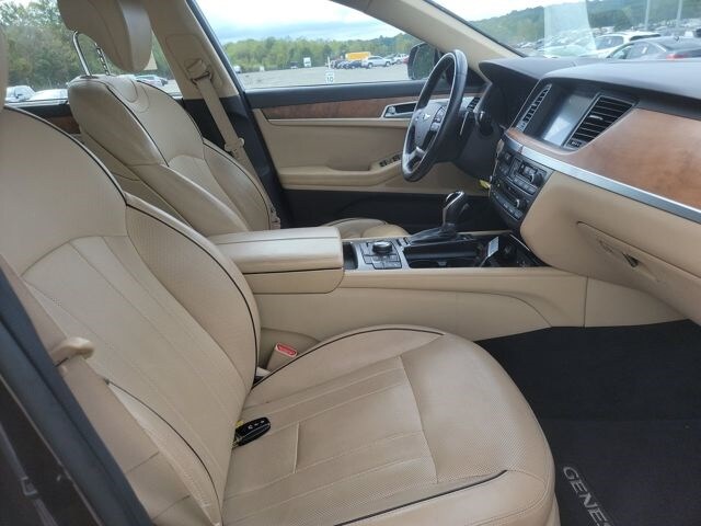 This Genesis is well equipped with Option Group 03, Technology Package 03 (7" TFT LCD Cluster Display, Automatic Emergency Braking (AEB), Electronic Parking Brake w/Automatic Vehicle Hold, Front & Rear Parking Assistance System, Haptic Feedback Steering Wheel, High Beam Assist, Lane Departure Warning System (LDWS), Lane Keep Assist, Power Heated & Cooled Front Bucket Seats, Pre-Safe® ty Seatbelt, Smart Cruise Control, and Ultra-Premium Leather Seating Surfaces), Ultimate Package 04 (Dual Mode HVAC and CO2 Sensor, Full-Color Heads-Up Display, Genuine Aluminum Interior Accents, Genuine Matte Finish Wood Trim, Power Trunk Lid, and Radio: AM/FM/SiriusXM/CD/HD/DVD/MP3 Audio System), Beige w/Leather Seating Surfaces or Ultra-Premium Leather Seating Surfaces, 4-Wheel Disc Brakes, 7 Speakers, ABS brakes, Air Conditioning, Alloy wheels, AM/FM radio: SiriusXM, Anti-whiplash front head restraints, Auto-dimming Rear-View mirror, Automatic temperature control, Bodyside moldings, Brake assist, Bumpers: body-color, CD player, Compass, Delay-off headlights, Driver door bin, Driver vanity mirror, Dual front impact airbags, Dual front side impact airbags, Electronic Stability Control, Emergency communication system: Blue Link, Exterior Parking Camera Rear, First Aid Kit, Four wheel independent suspension, Front anti-roll bar, Front Bucket Seats, Front Center Armrest w/Storage, Front dual zone A/C, Front reading lights, Fully automatic headlights, Garage door transmitter: HomeLink, Heated door mirrors, Heated front seats, Illuminated entry, Knee airbag, Leather Seating Surfaces, Leather steering wheel, Low tire pressure warning, Mud Guards, Navigation System, Occupant sensing airbag, Option Group 04, Outside temperature display, Overhead airbag, Overhead console, Panic alarm, Passenger door bin, Passenger vanity mirror, Power door mirrors, Power driver seat, Power Heated Front Bucket Seats, Power passenger seat, Power steering, Power windows, Radio: AM/FM/SiriusXM/HD/CD/MP3 Audio System, Rain sensing wipers, Rear anti-roll bar, Rear Bumper Applique, Rear reading lights, Rear seat center armrest, Rear side impact airbag, Rear window defroster, Remote keyless entry, Reversible Cargo Tray, Security system, Speed control, Speed-sensing steering, Speed-Sensitive Wipers, Steering wheel mounted audio controls, Tachometer, Telescoping steering wheel, Tilt steering wheel, Traction control, Trip computer, Turn signal indicator mirrors, Variably intermittent wipers, Wheel Locks, and Wheels: 18 x 8.0J Machine Finished Aluminum Alloy.