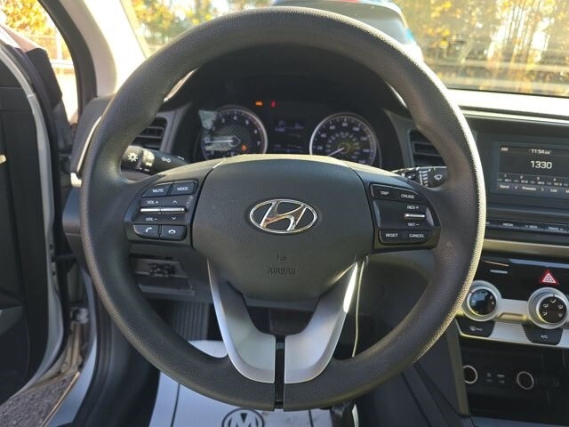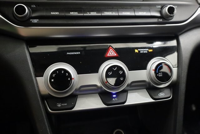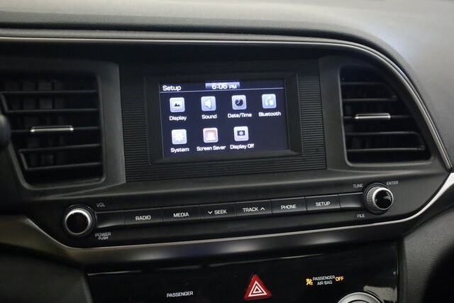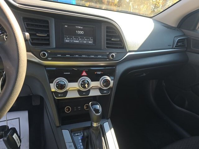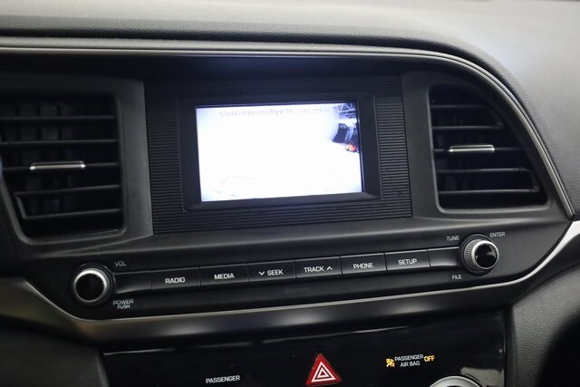 This Elantra is well equipped with Cargo Package (Cargo Net, Reversible Cargo Tray, and Trunk Hooks), Option Group 01, 6 Speakers, ABS brakes, Air Conditioning, AM/FM radio, Brake assist, Bumpers: body-color, Carpeted Floor Mats, Delay-off headlights, Driver door bin, Driver vanity mirror, Dual front impact airbags, Dual front side impact airbags, Electronic Stability Control, Exterior Parking Camera Rear, First Aid Kit, Front anti-roll bar, Front Bucket Seats, Front Center Armrest, Front reading lights, Front wheel independent suspension, Illuminated entry, Knee airbag, Low tire pressure warning, Occupant sensing airbag, Outside temperature display, Overhead airbag, Overhead console, Panic alarm, Passenger door bin, Passenger vanity mirror, Power door mirrors, Power steering, Power windows, Premium Cloth Seat Trim, Radio: AM/FM/MP3 Audio System, Rear Bumper Applique, Rear window defroster, Remote keyless entry, Security system, Speed control, Speed-sensing steering, Split folding rear seat, Steering wheel mounted audio controls, Tachometer, Telescoping steering wheel, Tilt steering wheel, Traction control, Trip computer, Variably intermittent wipers, and Wheels: 15" x 6" Steel w/Covers.