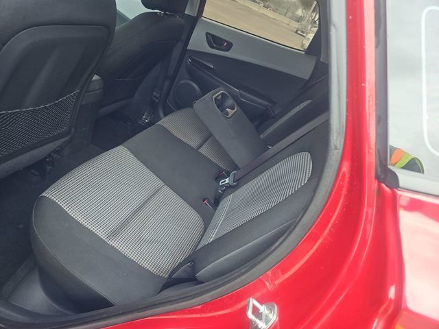 This Kona is well equipped with Option Group 01, 3.510 Axle Ratio, 4-Wheel Disc Brakes, 6 Speakers, ABS brakes, Air Conditioning, Alloy wheels, AM/FM radio, Apple CarPlay & Android Auto, Brake assist, Bumpers: body-color, Cloth Seat Trim, Delay-off headlights, Driver door bin, Driver vanity mirror, Dual front impact airbags, Dual front side impact airbags, Electronic Stability Control, Exterior Parking Camera Rear, Front anti-roll bar, Front Bucket Seats, Front Center Armrest, Front reading lights, Front wheel independent suspension, Fully automatic headlights, Illuminated entry, Low tire pressure warning, Occupant sensing airbag, Overhead airbag, Overhead console, Panic alarm, Passenger door bin, Passenger vanity mirror, Power door mirrors, Power steering, Power windows, Radio: AM/FM/MP3 Audio System, Rear seat center armrest, Rear window defroster, Rear window wiper, Remote keyless entry, Security system, Speed control, Speed-sensing steering, Split folding rear seat, Spoiler, Steering wheel mounted audio controls, Tachometer, Telescoping steering wheel, Tilt steering wheel, Traction control, Trip computer, Variably intermittent wipers, and Wheels: 16 x 6.5J Alloy.