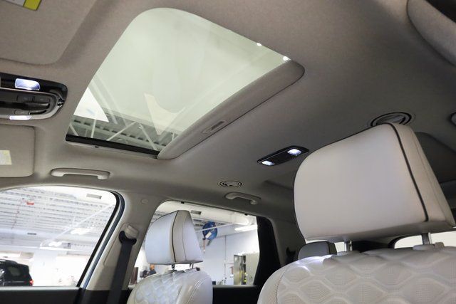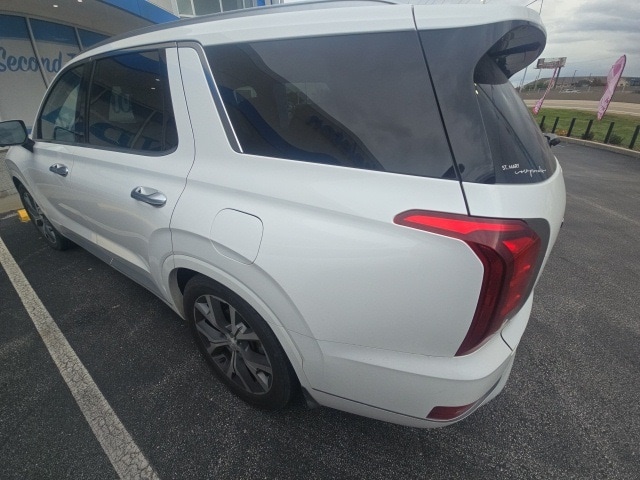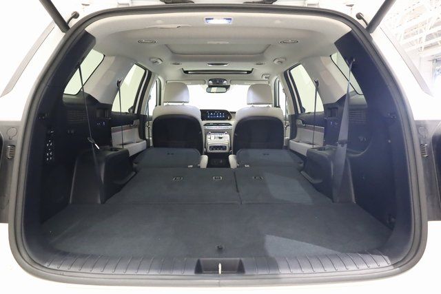 This Palisade is well equipped with Option Group 01, 12 Speakers, 3.648 Axle Ratio, 3rd row seats: split-bench, 4-Wheel Disc Brakes, ABS brakes, Air Conditioning, Alloy wheels, AM/FM radio: SiriusXM, Apple CarPlay & Android Auto, Auto High-beam Headlights, Auto-dimming Rear-View mirror, Auto-leveling suspension, Automatic temperature control, Brake assist, Bumpers: body-color, Compass, Delay-off headlights, Driver door bin, Driver vanity mirror, Dual front impact airbags, Dual front side impact airbags, Electronic Stability Control, Emergency communication system: Blue Link Connected Car Service (3-year complimentary subscription), Four wheel independent suspension, Front anti-roll bar, Front Bucket Seats, Front Center Armrest, Front dual zone A/C, Front reading lights, Fully automatic headlights, Garage door transmitter: HomeLink, harman/kardon® Speakers, Heads-Up Display, Heated & Ventilated Front Bucket Seats, Heated door mirrors, Heated front seats, Heated rear seats, Heated steering wheel, Illuminated entry, Knee airbag, Low tire pressure warning, Memory seat, Navigation System, Occupant sensing airbag, Outside temperature display, Overhead airbag, Overhead console, Panic alarm, Passenger door bin, Passenger vanity mirror, Power door mirrors, Power driver seat, Power Liftgate, Power moonroof, Power passenger seat, Power steering, Power windows, Premium Nappa Leather Seat Trim, Radio data system, Radio: AM/FM/MP3 Premium Audio System, Rain sensing wipers, Rear air conditioning, Rear anti-roll bar, Rear reading lights, Rear window defroster, Rear window wiper, Reclining 3rd row seat, Remote keyless entry, Security system, Speed control, Speed-sensing steering, Split folding rear seat, Spoiler, Steering wheel mounted audio controls, Tachometer, Telescoping steering wheel, Tilt steering wheel, Traction control, Trip computer, Turn signal indicator mirrors, Variably intermittent wipers, Ventilated front seats, Ventilated rear seats, and Wheels: 20" x 7.5J Split 5-Spoke Machined Alloy.
