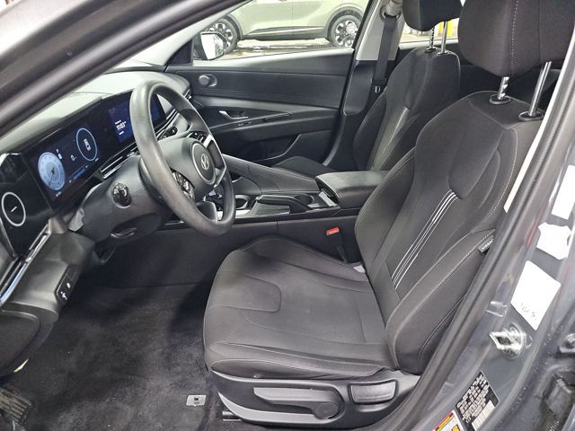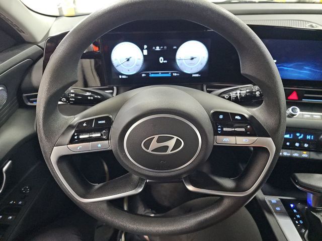 This Elantra is well equipped with Option Group 01, 16" x 6.5J Alloy Wheels, 4-Wheel Disc Brakes, 6 Speakers, ABS brakes, Air Conditioning, Alloy wheels, AM/FM radio: SiriusXM, Apple CarPlay & Android Auto, Auto High-beam Headlights, Automatic temperature control, Brake assist, Bumpers: body-color, Cloth Seat Trim, Delay-off headlights, Driver door bin, Driver vanity mirror, Dual front impact airbags, Dual front side impact airbags, Electronic Stability Control, Emergency communication system: Bluelink+, Exterior Parking Camera Rear, Front anti-roll bar, Front Bucket Seats, Front Center Armrest, Front dual zone A/C, Front reading lights, Front wheel independent suspension, Fully automatic headlights, Illuminated entry, Low tire pressure warning, Navigation System, Occupant sensing airbag, Outside temperature display, Overhead airbag, Overhead console, Panic alarm, Passenger door bin, Passenger vanity mirror, Power door mirrors, Power steering, Power windows, Radio: AM/FM/HD/SiriusXM Display Audio, Rear side impact airbag, Rear window defroster, Remote keyless entry, Security system, Speed control, Speed-sensing steering, Steering wheel mounted audio controls, Tachometer, Telescoping steering wheel, Tilt steering wheel, Traction control, Trip computer, and Variably intermittent wipers.
