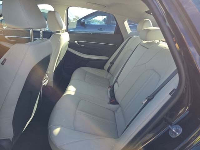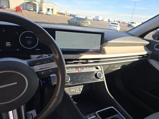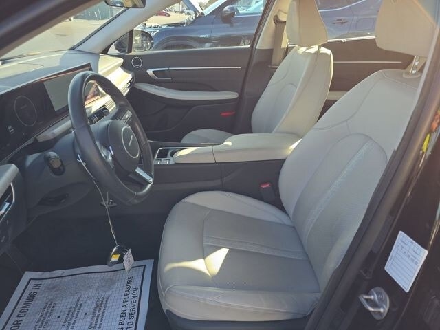 This Sonata Hybrid is well equipped with Option Group 01, I4, 6-Speed Automatic with Shiftronic, 12 Speakers, 17" x 7.0J Aluminum Alloy Wheels, 4-Wheel Disc Brakes, ABS brakes, Air Conditioning, Alloy wheels, AM/FM radio: SiriusXM, Apple CarPlay & Android Auto, Auto High-beam Headlights, Auto-dimming Rear-View mirror, Automatic temperature control, Brake assist, Bumpers: body-color, Delay-off headlights, Driver door bin, Driver vanity mirror, Dual front impact airbags, Dual front side impact airbags, Electronic Stability Control, Emergency communication system: Bluelink, Four wheel independent suspension, Front anti-roll bar, Front Bucket Seats, Front Center Armrest, Front dual zone A/C, Front reading lights, Fully automatic headlights, Heads-Up Display, Heated & Ventilated Front Bucket Seats, Heated door mirrors, Heated front seats, Heated steering wheel, Illuminated entry, Knee airbag, Lane Departure Warning System, Leather Seating Surfaces, Leather steering wheel, Low tire pressure warning, Memory seat, Navigation System, Occupant sensing airbag, Outside temperature display, Overhead airbag, Overhead console, Panic alarm, Passenger door bin, Passenger vanity mirror, Power door mirrors, Power driver seat, Power moonroof, Power passenger seat, Power steering, Power windows, Radio data system, Radio: AM/FM/HD/SiriusXM, Rain sensing wipers, Rear anti-roll bar, Rear seat center armrest, Rear side impact airbag, Rear window defroster, Remote keyless entry, Security system, Speed control, Speed-sensing steering, Speed-Sensitive Wipers, Split folding rear seat, Spoiler, Steering wheel mounted audio controls, Tachometer, Telescoping steering wheel, Tilt steering wheel, Traction control, Trip computer, Variably intermittent wipers, and Ventilated front seats.
