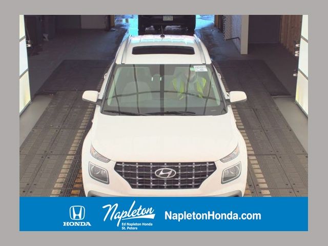 This Venue is well equipped with Option Group 01, 4-Wheel Disc Brakes, 6 Speakers, 6.052 Axle Ratio, 6.5J x 17" Alloy Wheels, ABS brakes, Air Conditioning, Alloy wheels, AM/FM radio, Apple CarPlay & Android Auto, Auto High-beam Headlights, Automatic temperature control, Brake assist, Bumpers: body-color, Cloth Seat Trim, Delay-off headlights, Driver door bin, Driver vanity mirror, Dual front impact airbags, Dual front side impact airbags, Electronic Stability Control, Front anti-roll bar, Front Bucket Seats, Front Center Armrest, Front reading lights, Front wheel independent suspension, Fully automatic headlights, Illuminated entry, Leather Shift Knob, Leather steering wheel, Low tire pressure warning, Occupant sensing airbag, Outside temperature display, Overhead airbag, Overhead console, Panic alarm, Passenger door bin, Passenger vanity mirror, Power door mirrors, Power moonroof, Power steering, Power windows, Radio: AM/FM/HD Display Audio, Rear window defroster, Rear window wiper, Remote keyless entry, Roof rack: rails only, Security system, Speed control, Speed-sensing steering, Split folding rear seat, Spoiler, Steering wheel mounted audio controls, Tachometer, Telescoping steering wheel, Tilt steering wheel, Traction control, Trip computer, and Variably intermittent wipers.