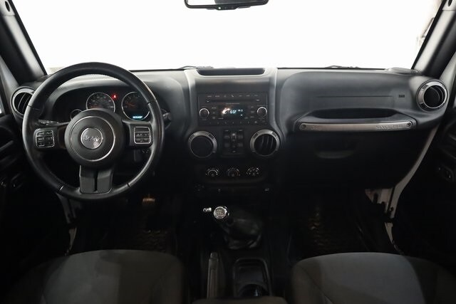 This Wrangler is well equipped with Connectivity Group (Remote USB Port, Tire Pressure Monitoring Display, Uconnect Voice Command w/Bluetooth, and Vehicle Information Center), Quick Order Package 23S (17" x 7.5" Aluminum Wheels, Auto-Dimming Mirror w/Reading Lamp, Chrome/Leather Wrapped Shift Knob, Deep Tint Sunscreen Windows, Front 1-Touch Down Power Windows, Leather Wrapped Steering Wheel, Power Convenience Group, Power Heated Mirrors, Power Locks, Remote Keyless Entry, and Security Alarm), 1-Yr SiriusXM Radio Service, 16" x 7.0" Luxury Styled Steel Wheels, 3.21 Rear Axle Ratio, 4-Wheel Disc Brakes, 8 Speakers, ABS brakes, Air Conditioning, AM/FM radio, Audio Jack Input for Mobile Devices, Black 3-Piece Hard Top, Brake assist, CD player, Cloth Seats w/Adjustable Head Restraints, Compass, Delete Sunrider Soft Top, Driver door bin, Driver vanity mirror, Dual front impact airbags, Electronic Stability Control, Freedom Panel Storage Bag, Front anti-roll bar, Front Bucket Seats, Front Center Armrest w/Storage, Front fog lights, Integrated roll-over protection, Low tire pressure warning, Manufacturer's Statement of Origin, Normal Duty Suspension, Occupant sensing airbag, Outside temperature display, Passenger door bin, Passenger vanity mirror, Power steering, Radio: 130, Rear anti-roll bar, Rear Window Defroster, Rear Window Wiper/Washer, SIRIUS Satellite Radio, Speed control, Split folding rear seat, Steering wheel mounted audio controls, Sunrider Soft Top, Tachometer, Tilt steering wheel, Tinted Rear Quarter & Liftgate Windows, Traction control, Trip computer, and Variably intermittent wipers.