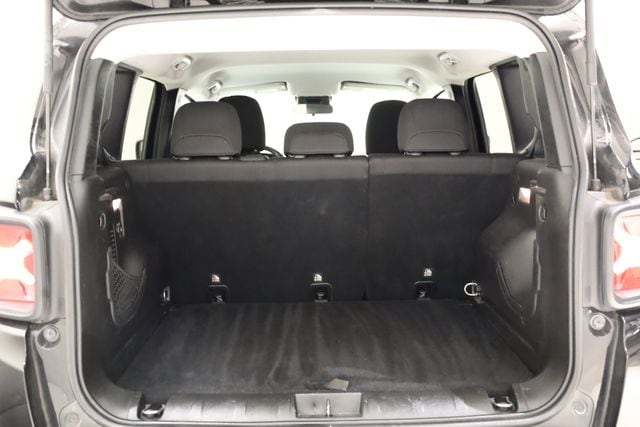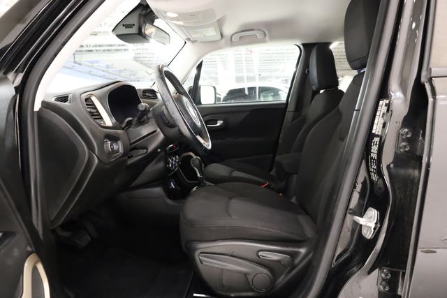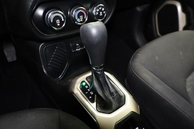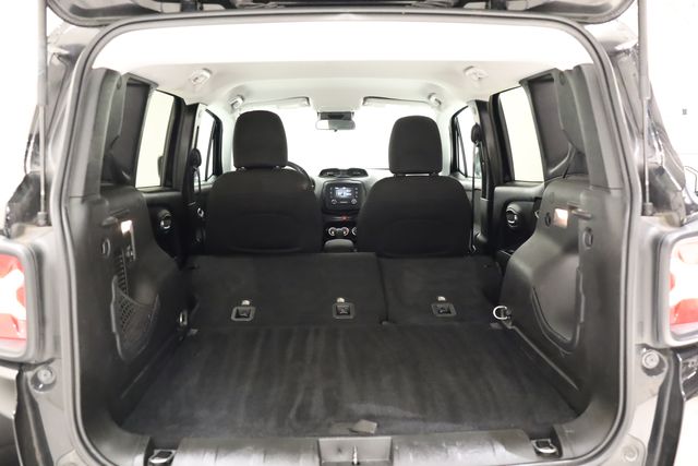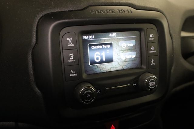 This Renegade is well equipped with Quick Order Package 27J, 16" x 6.5" Aluminum Wheels, 17" x 7.0" Aluminum Wheels, 4-Wheel Disc Brakes, 6 Speakers, ABS brakes, Air Conditioning, Alloy wheels, AM/FM radio: SiriusXM, Anti-whiplash front head restraints, Brake assist, Cloth Low-Back Bucket Seats, Compass, Delay-off headlights, Driver door bin, Driver vanity mirror, Dual front impact airbags, Dual front side impact airbags, Electronic Stability Control, Four wheel independent suspension, Front anti-roll bar, Front Bucket Seats, Front Center Armrest, Front fog lights, Front reading lights, Fully automatic headlights, Heated door mirrors, Illuminated entry, Knee airbag, Leather steering wheel, Low tire pressure warning, Normal Duty Suspension, Occupant sensing airbag, Outside temperature display, Overhead airbag, Overhead console, Panic alarm, ParkView Rear Back-Up Camera, Passenger door bin, Passenger vanity mirror, Power door mirrors, Power steering, Power windows, Radio data system, Radio: Uconnect 3 w/5" Display, Rear anti-roll bar, Rear window defroster, Rear window wiper, Remote keyless entry, Roof rack: rails only, Speed control, Split folding rear seat, Spoiler, Steering wheel mounted audio controls, Tachometer, Telescoping steering wheel, Tilt steering wheel, Traction control, Trip computer, Variably intermittent wipers, and Voltmeter.