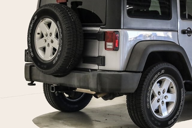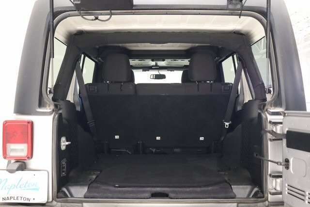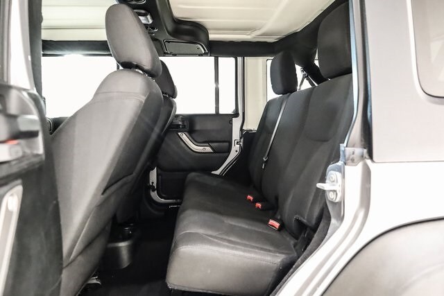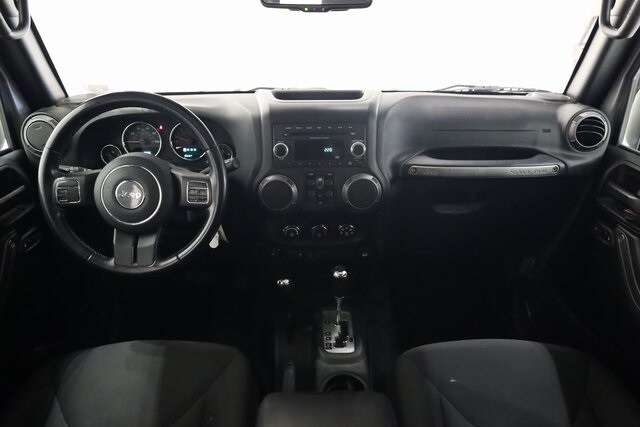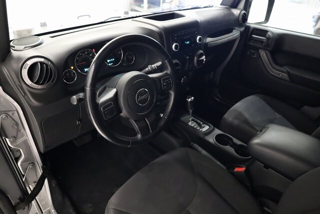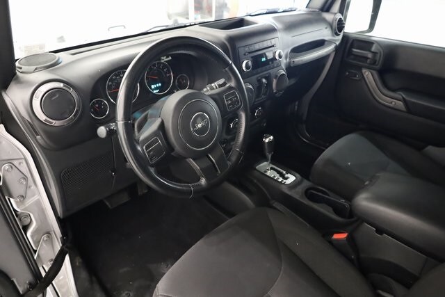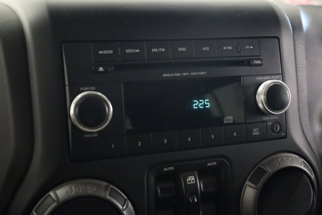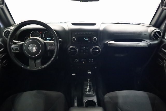 This Wrangler JK is well equipped with Power Convenience Group (Auto-Dimming Mirror w/Reading Lamp, Front 1-Touch Down Power Windows, Power Heated Mirrors, Power Locks, Remote Keyless Entry, and Security Alarm), Quick Order Package 24S Sport S (17" x 7.5" Aluminum Wheels, Chrome/Leather Wrapped Shift Knob, Deep Tint Sunscreen Windows, and Leather Wrapped Steering Wheel), 16" x 7.0" Luxury Styled Steel Wheels, 3.21 Rear Axle Ratio, 4-Wheel Disc Brakes, 8 Speakers, ABS brakes, Air Conditioning, AM/FM radio, Audio Jack Input for Mobile Devices, Black 3-Piece Hard Top, Brake assist, CD player, Cloth Seats w/Adjustable Head Restraints, Compass, Driver door bin, Driver Height Adjuster Seat, Driver vanity mirror, Dual front impact airbags, Electronic Stability Control, Freedom Panel Storage Bag, Front anti-roll bar, Front Bucket Seats, Front Center Armrest w/Storage, Front fog lights, Integrated roll-over protection, Low tire pressure warning, Normal Duty Suspension, Occupant sensing airbag, Outside temperature display, Passenger door bin, Passenger vanity mirror, Power steering, R1234YF A/C Refrigerant, Radio: 130, Rear anti-roll bar, Rear Window Defroster, Rear Window Wiper/Washer, Speed control, Split folding rear seat, Steering wheel mounted audio controls, Sunrider Soft Top, Tachometer, Tilt steering wheel, Traction control, Trip computer, Tubular Side Steps, and Variably intermittent wipers.