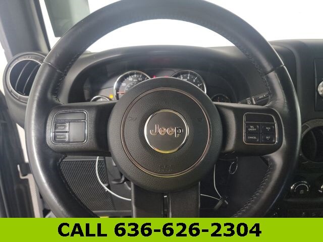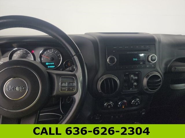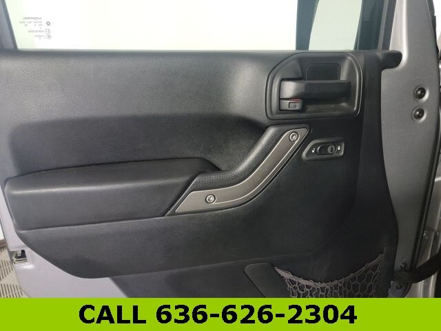 This Wrangler JK is well equipped with Power Convenience Group (Auto-Dimming Mirror w/Reading Lamp, Front 1-Touch Down Power Windows, Power Heated Mirrors, Power Locks, Remote Keyless Entry, and Security Alarm), Quick Order Package 24S Sport S (17" x 7.5" Aluminum Wheels, Chrome/Leather Wrapped Shift Knob, Deep Tint Sunscreen Windows, and Leather Wrapped Steering Wheel), 16" x 7.0" Luxury Styled Steel Wheels, 3.21 Rear Axle Ratio, 4-Wheel Disc Brakes, 8 Speakers, ABS brakes, Air Conditioning, AM/FM radio, Audio Jack Input for Mobile Devices, Black 3-Piece Hard Top, Brake assist, CD player, Cloth Seats w/Adjustable Head Restraints, Compass, Driver door bin, Driver Height Adjuster Seat, Driver vanity mirror, Dual front impact airbags, Electronic Stability Control, Freedom Panel Storage Bag, Front anti-roll bar, Front Bucket Seats, Front Center Armrest w/Storage, Front fog lights, Integrated roll-over protection, Low tire pressure warning, Normal Duty Suspension, Occupant sensing airbag, Outside temperature display, Passenger door bin, Passenger vanity mirror, Power steering, R1234YF A/C Refrigerant, Radio: 130, Rear anti-roll bar, Rear Window Defroster, Rear Window Wiper/Washer, Speed control, Split folding rear seat, Steering wheel mounted audio controls, Sunrider Soft Top, Tachometer, Tilt steering wheel, Traction control, Trip computer, Tubular Side Steps, and Variably intermittent wipers.