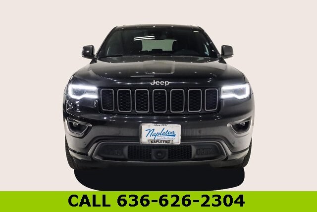 This Grand Cherokee is well equipped with MOPAR Interior Protection Group, Premium Lighting Group (Auto High Beam Headlamp Control, Bi-Xenon High-Intensity Discharge Headlamps, Front LED Fog Lamps, and LED Daytime Running Headlamps), Quick Order Package 2BK 80th (Adaptive Cruise Control w/Stop, Advanced Brake Assist, Berber Floor Mats w/80th Anniversary Tag, Black Roof Molding, Body Color Claddings, Body Color Door Handles, Body Color Shark Fin Antenna, Dark Day Light Opening Moldings, Dark Headlamp Bezel Finish, Dark Lens Taillamps, Front Accent/Body Color Fascia, Full Speed FWD Collision Warn Plus, Granite Crystal Exterior Accents, Granite Crystal Exterior Badging, Granite Crystal Exterior Mirror Caps, Granite Crystal/Black Grille, Jeep 80th Anniversary Badges, Jeep 80th Anniversary Edition, Lane Departure Warning Plus, Leather Trimmed Bucket Seats (JY), LT. Tungsten Interior Accent Stitching, Parallel & Perp Park Assist w/Stop, Piano Black/Anod. Gunmetal Interior Accents, Rain Sensitive Windshield Wipers, Rear Accent/Body Color Fascia, and Wheels: 20" x 8.0" Granite Crystal Aluminum), 4WD, 1-Year SiriusXM Guardian Trial, 230MM Rear Axle, 3.45 Rear Axle Ratio, 4-Wheel Disc Brakes, 4G LTE Wi-Fi Hot Spot, 6 Speakers, 8.4" Touchscreen Display, ABS brakes, Air Conditioning, Alloy wheels, AM/FM radio: SiriusXM, Anti-whiplash front head restraints, Apple CarPlay, Apple CarPlay/Android Auto, Audio memory, Auto-dimming door mirrors, Auto-dimming Rear-View mirror, Automatic temperature control, Brake assist, Bumpers: body-color, Compass, Delay-off headlights, Driver door bin, Driver vanity mirror, Dual front impact airbags, Dual front side impact airbags, Electronic Stability Control, Emergency communication system: SiriusXM Guardian, Four wheel independent suspension, Front anti-roll bar, Front Bucket Seats, Front Center Armrest w/Storage, Front dual zone A/C, Front fog lights, Front License Plate Bracket, Front reading lights, Fully automatic headlights, Garage door transmitter, Google Android Auto, GPS Antenna Input, GPS Navigation, HD Radio, Heated door mirrors, Heated front seats, Heated steering wheel, Illuminated entry, Integrated Voice Command w/Bluetooth, Knee airbag, Leather Shift Knob, Leather Trimmed Bucket Seats, Low tire pressure warning, Memory seat, MOPAR Cargo Area Liner (DISC), MOPAR Slush Mats (DISC), Navigation System, Normal Duty Suspension, Occupant sensing airbag, Outside temperature display, Overhead airbag, Overhead console, Panic alarm, ParkView Rear Back-Up Camera, Passenger door bin, Passenger vanity mirror, Power door mirrors, Power driver seat, Power Liftgate, Power moonroof, Power passenger seat, Power steering, Power windows, Radio data system, Radio: Uconnect 4C Nav w/8.4" Display, Rear anti-roll bar, Rear reading lights, Rear seat center armrest, Rear window defroster, Rear window wiper, Remote keyless entry, Roof rack: rails only, Security system, SiriusXM Satellite Radio, SiriusXM Traffic Plus, SiriusXM Travel Link, Speed control, Speed-sensing steering, Speed-Sensitive Wipers, Split folding rear seat, Spoiler, Steering wheel mounted audio controls, Tachometer, Telescoping steering wheel, Tilt steering wheel, Traction control, Trip computer, Turn signal indicator mirrors, Variably intermittent wipers, Voltmeter, and Wheels: 18" x 8.0" Tech Gray Diamond Cut.