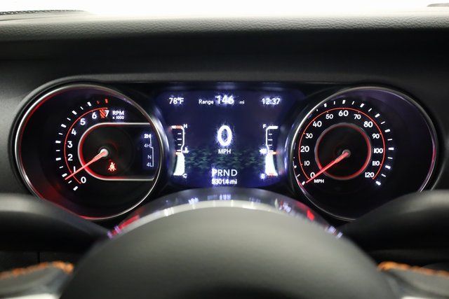 This Gladiator is well equipped with Quick Order Package 24D, Trailer Tow Package (240 Amp Alternator, Class IV Receiver Hitch, Heavy-Duty Engine Cooling, and Trailer Hitch Zoom), 4-Wheel Disc Brakes, 4.10 Rear Axle Ratio, 9 Speakers, 97 MPH Vehicle Max Speed Calibration, ABS brakes, Air Conditioning, Alloy wheels, AM/FM radio: SiriusXM, Apple CarPlay/Android Auto, Auto-dimming Rear-View mirror, Automatic temperature control, Black 3-Piece Hard Top, Brake assist, Compass, Delay-off headlights, Driver door bin, Driver vanity mirror, Dual front impact airbags, Dual front side impact airbags, Electronic Stability Control, Emergency communication system: SiriusXM Guardian, Freedom Panel Storage Bag, Front anti-roll bar, Front Bucket Seats, Front Center Armrest w/Storage, Front dual zone A/C, Front fog lights, Front License Plate Bracket, Front reading lights, Fully automatic headlights, Garage door transmitter, Heated door mirrors, Heavy Duty Suspension w/Gas Shocks, Illuminated entry, Integrated roll-over protection, Leather steering wheel, Low tire pressure warning, MOPAR Spray In Bedliner, Navigation System, Occupant sensing airbag, Outside temperature display, Panic alarm, ParkView Rear Back-Up Camera, Passenger door bin, Passenger vanity mirror, Power door mirrors, Power steering, Power windows, Premium Cloth Seats w/Sport Bolsters, Radio data system, Radio: Uconnect 4C Nav w/8.4" Display, Rear anti-roll bar, Rear reading lights, Rear Sliding Window, Rear Window Defroster, Remote keyless entry, Remote Start System, Security system, Speed control, Split folding rear seat, Steering wheel mounted audio controls, Tachometer, Telescoping steering wheel, Tilt steering wheel, Traction control, Trip computer, Variably intermittent wipers, Voltmeter, and Wheels: 17" x 7.5" Low Gloss Black Aluminum.