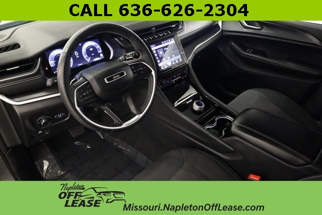 This Grand Cherokee is well equipped with Quick Order Package 23A Laredo, 4WD, 3.45 Rear Axle Ratio, 4-Wheel Disc Brakes, 6 Speakers, ABS brakes, Air Conditioning, Alloy wheels, Anti-whiplash front head restraints, Automatic temperature control, Brake assist, Bumpers: body-color, Cloth Seats, Compass, Delay-off headlights, Driver door bin, Driver vanity mirror, Dual front impact airbags, Dual front side impact airbags, Electronic Stability Control, Emergency communication system, Four wheel independent suspension, Front anti-roll bar, Front Bucket Seats, Front Center Armrest w/Storage, Front dual zone A/C, Front License Plate Bracket, Front reading lights, Fully automatic headlights, Heated door mirrors, Illuminated entry, Knee airbag, Low tire pressure warning, Molded In Color Black/Gloss Black Roof Rails, Normal Duty Suspension, Occupant sensing airbag, Outside temperature display, Overhead airbag, Overhead console, Panic alarm, ParkView Rear Back-Up Camera, Passenger door bin, Passenger vanity mirror, Power door mirrors, Power driver seat, Power steering, Power windows, Radio data system, Radio: Uconnect 5 w/8.4" Display, Rear anti-roll bar, Rear reading lights, Rear window defroster, Rear window wiper, Remote keyless entry, Security system, Speed control, Speed-Sensitive Wipers, Split folding rear seat, Spoiler, Steering wheel mounted audio controls, Tachometer, Telescoping steering wheel, Tilt steering wheel, Traction control, Trip computer, Variably intermittent wipers, Voltmeter, and Wheels: 17" x 6.5" Fully Painted Aluminum.