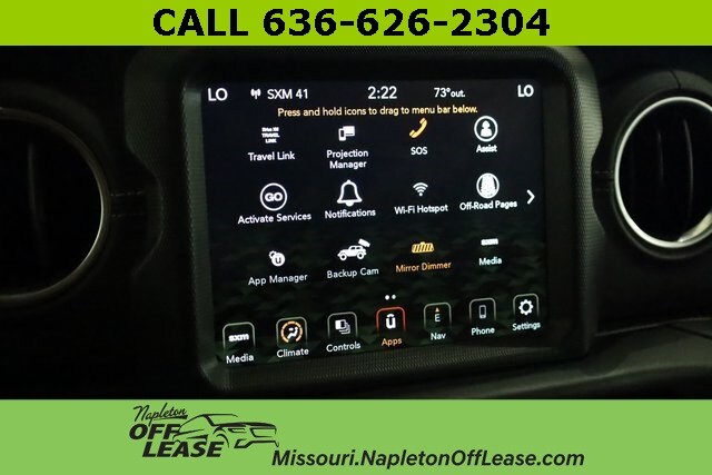 This Wrangler is well equipped with Quick Order Package 29P Sahara, Trailer Tow & Aux Switch Group (700 Amp Maintenance Free Battery and Auxiliary Switches), 2.0L I4 DOHC, 3.73 Rear Axle Ratio, 4-Wheel Disc Brakes, 9 Speakers, ABS brakes, Air Conditioning, Alloy wheels, AM/FM radio: SiriusXM, Apple CarPlay/Android Auto, Auto-dimming Rear-View mirror, Automatic temperature control, Black 3-Piece Hard Top, Brake assist, Compass, Delay-off headlights, Driver door bin, Driver vanity mirror, Dual front impact airbags, Dual front side impact airbags, Electronic Stability Control, Emergency communication system: SiriusXM Guardian, Front anti-roll bar, Front Bucket Seats, Front Center Armrest w/Storage, Front dual zone A/C, Front fog lights, Front License Plate Bracket, Front reading lights, Fully automatic headlights, Garage door transmitter, Heated door mirrors, Illuminated entry, Integrated roll-over protection, Leather Shift Knob, Low tire pressure warning, Navigation System, Occupant sensing airbag, Outside temperature display, Panic alarm, ParkView Rear Back-Up Camera, Passenger door bin, Passenger vanity mirror, Power door mirrors, Power steering, Power windows, Premium McKinley Trimmed Seats, Radio data system, Radio: Uconnect 4C Nav w/8.4" Display, Rear anti-roll bar, Rear reading lights, Rear seat center armrest, Remote keyless entry, Security system, Speed control, Split folding rear seat, Sport Suspension, Steering wheel mounted audio controls, Tachometer, Telescoping steering wheel, Tilt steering wheel, Traction control, Trip computer, Variably intermittent wipers, Voltmeter, and Wheels: 20" x 8" Fully Painted Aluminum.