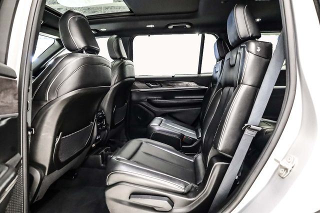 Meticulously equipped, this Grand Cherokee L Limited boasts an impressive array of premium features that will captivate you. Highlights include the Luxury Tech Group II, which offers a power tilt/telescoping steering column, surround-view camera system, wireless charging pad, and ventilated front seats, among other conveniences. The stunning Dual-Pane Panoramic Sunroof and Interior Rear Facing Camera further enhance your enjoyment and connectivity.