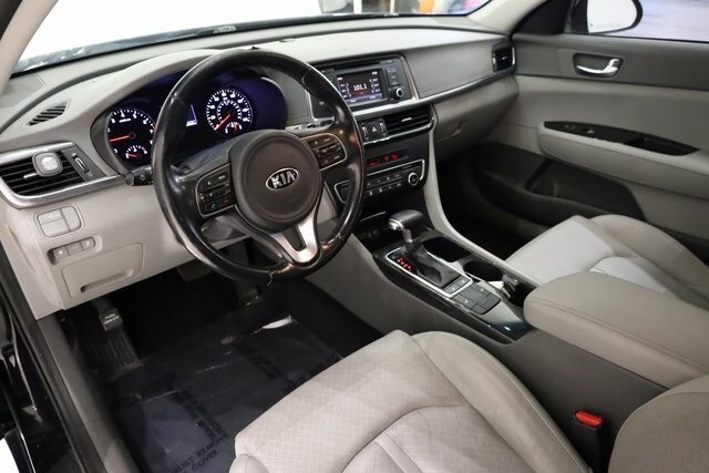 This Optima is well equipped with Gray Leather, 17" Alloy Wheels, 4-Wheel Disc Brakes, 6 Speakers, ABS brakes, Air Conditioning, Alloy wheels, AM/FM radio: SiriusXM, AM/FM/CD/MP3 Radio, Auto-Dimming Mirror w/HomeLink & Compass, Automatic temperature control, Brake assist, Bumpers: body-color, Cargo Net, Cargo Tray, CD player, Delay-off headlights, Driver door bin, Driver vanity mirror, Dual front impact airbags, Dual front side impact airbags, Electronic Stability Control, Exterior Parking Camera Rear, Four wheel independent suspension, Front anti-roll bar, Front Bucket Seats, Front Center Armrest, Front dual zone A/C, Front reading lights, Fully automatic headlights, Heated door mirrors, Heated Front Bucket Seats, Heated front seats, Heated steering wheel, Illuminated entry, Knee airbag, Leather Seat Trim, Leather Shift Knob, Leather steering wheel, Low tire pressure warning, Memory seat, Occupant sensing airbag, Outside temperature display, Overhead airbag, Overhead console, Panic alarm, Passenger door bin, Passenger vanity mirror, Power door mirrors, Power driver seat, Power steering, Power windows, Rear anti-roll bar, Rear reading lights, Rear seat center armrest, Rear window defroster, Remote keyless entry, Remote Start (Push Button), Security system, Speed control, Speed-sensing steering, Split folding rear seat, Steering wheel mounted audio controls, Tachometer, Telescoping steering wheel, Tilt steering wheel, Traction control, Trip computer, Turn signal indicator mirrors, and Variably intermittent wipers.