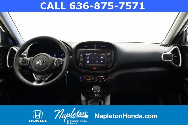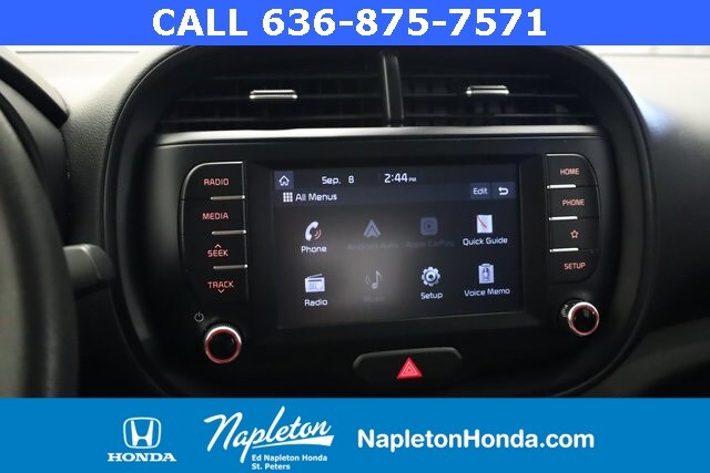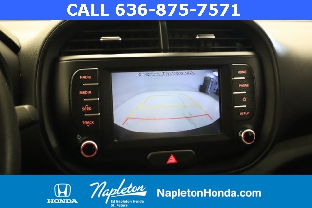 This Soul is well equipped with 4-Wheel Disc Brakes, 6 Speakers, ABS brakes, Air Conditioning, Alloy wheels, AM/FM radio, Apple CarPlay & Android Auto, Brake assist, Bumpers: body-color, Carpeted Floor Mats, Delay-off headlights, Driver door bin, Driver vanity mirror, Dual front impact airbags, Dual front side impact airbags, Electronic Stability Control, Exterior Parking Camera Rear, Front anti-roll bar, Front Bucket Seats, Front Center Armrest, Front reading lights, Front wheel independent suspension, Fully automatic headlights, Low tire pressure warning, Occupant sensing airbag, Outside temperature display, Overhead airbag, Overhead console, Passenger door bin, Passenger vanity mirror, Power door mirrors, Power driver seat, Power steering, Power windows, Premium Cloth Seat Trim, Radio: AM/FM/MP3 Audio System, Rear window defroster, Rear window wiper, Remote keyless entry, Speed control, Speed-sensing steering, Split folding rear seat, Steering wheel mounted audio controls, Tachometer, Telescoping steering wheel, Tilt steering wheel, Traction control, Trip computer, Variably intermittent wipers, and Wheels: 16" x 6.5 Alloy.
