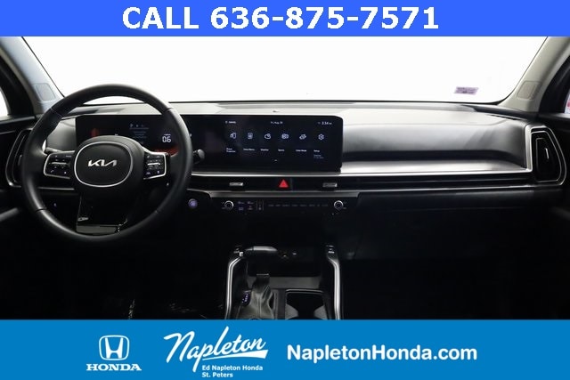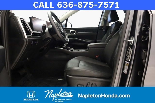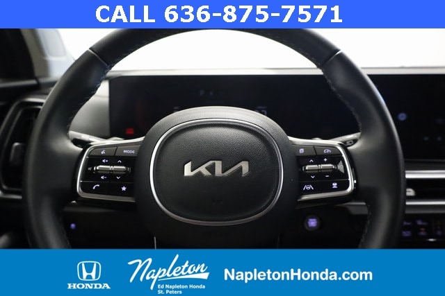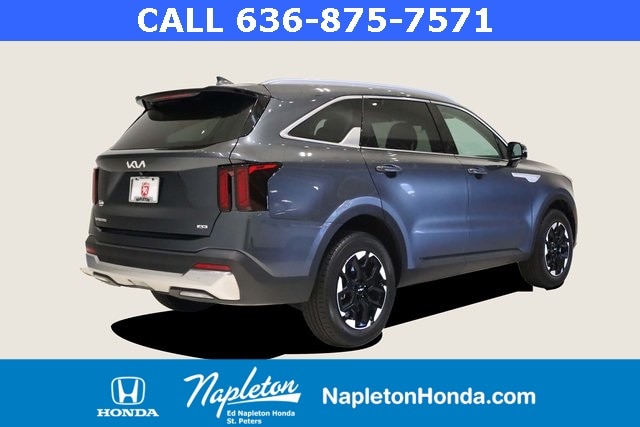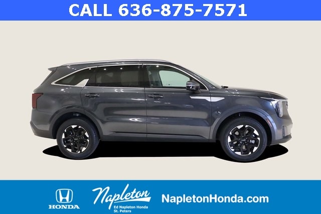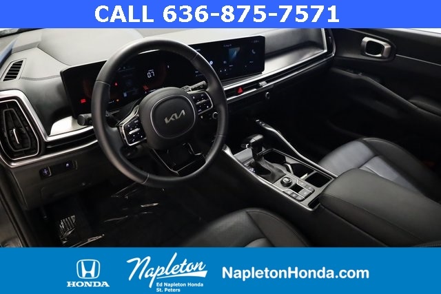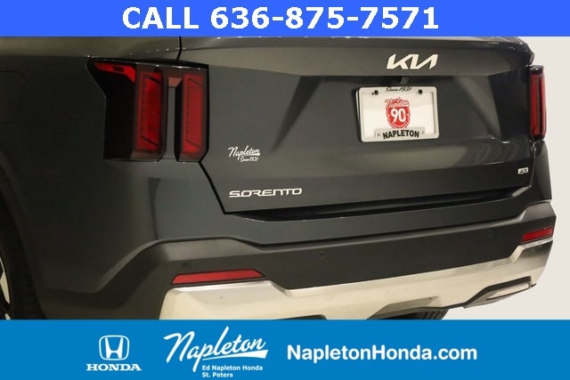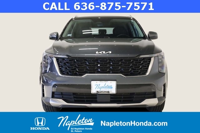 This Sorento is well equipped with Panoramic Sunroof Package (LED Interior Lighting and Panoramic Power Sunroof w/Power Sunshade), AWD, 3rd row seats: split-bench, 4-Wheel Disc Brakes, 4.081 Axle Ratio, 6 Speakers, ABS brakes, Air Conditioning, Alloy wheels, AM/FM radio: SiriusXM, Apple CarPlay & Android Auto, Auto High-beam Headlights, Automatic temperature control, Brake assist, Bumpers: body-color, Carpeted Floor Mats, Delay-off headlights, Driver door bin, Driver vanity mirror, Dual front impact airbags, Dual front side impact airbags, Electronic Stability Control, Emergency communication system: 911 Connect, Exterior Parking Camera Rear, Four wheel independent suspension, Front anti-roll bar, Front Bucket Seats, Front Center Armrest, Front dual zone A/C, Front fog lights, Front reading lights, Fully automatic headlights, Heated door mirrors, Heated Front Bucket Seats, Heated front seats, Illuminated entry, Knee airbag, Leather Shift Knob, Leather steering wheel, Low tire pressure warning, Navigation System, Occupant sensing airbag, Outside temperature display, Overhead airbag, Overhead console, Panic alarm, Passenger door bin, Passenger vanity mirror, Power door mirrors, Power driver seat, Power steering, Power windows, Radio data system, Radio: AM/FM Audio System, Rear anti-roll bar, Rear reading lights, Rear seat center armrest, Rear side impact airbag, Rear window defroster, Rear window wiper, Remote keyless entry, Security system, Smart Key w/ Push Button and Remote Start, Speed control, Speed-sensing steering, Split folding rear seat, Spoiler, Steering wheel mounted audio controls, SynTex Artificial Leather Seat Trim, Tachometer, Telescoping steering wheel, Tilt steering wheel, Traction control, Trip computer, Turn signal indicator mirrors, Variably intermittent wipers, and Wheels: 7.5J x 18" Alloy w/Machine Finish.