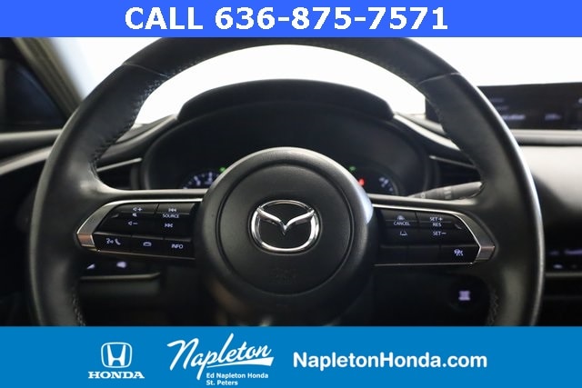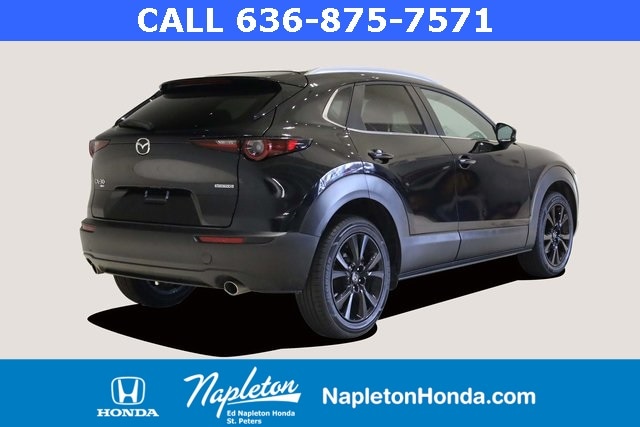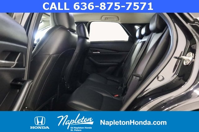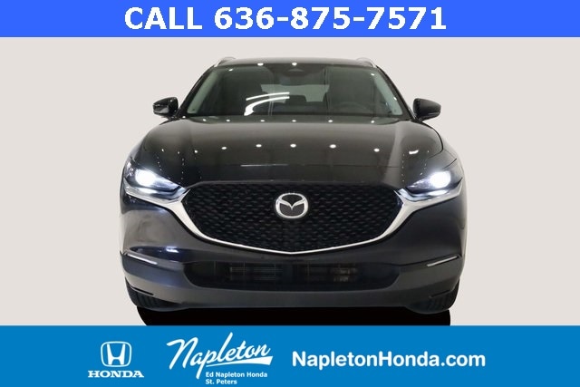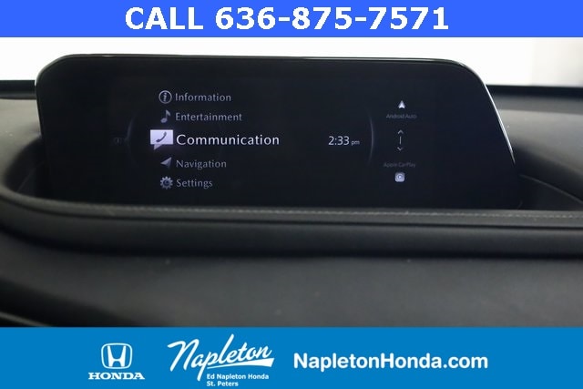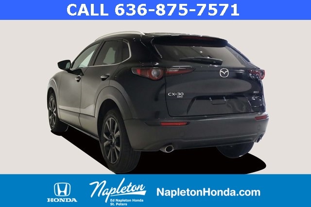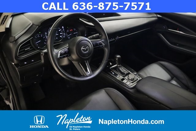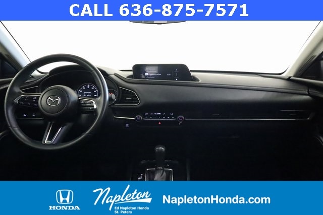 This Mazda CX-30 is well equipped with 4-Wheel Disc Brakes, 4.095 Axle Ratio, 6 Speakers, ABS brakes, Air Conditioning, Alloy wheels, AM/FM radio, AppLink/Apple CarPlay and Android Auto, Auto High-beam Headlights, Automatic temperature control, Brake assist, Bumpers: body-color, Compass, Delay-off headlights, Driver door bin, Driver vanity mirror, Dual front impact airbags, Dual front side impact airbags, Electronic Stability Control, Emergency communication system: Mazda Connected Services (3-year complimentary trial included), Exterior Parking Camera Rear, Front anti-roll bar, Front Bucket Seats, Front Center Armrest, Front dual zone A/C, Front reading lights, Front wheel independent suspension, Fully automatic headlights, Heated door mirrors, Illuminated entry, Knee airbag, Leather Shift Knob, Leather steering wheel, Leatherette Seat Trim, Low tire pressure warning, MAZDA CONNECT Infotainment System, Occupant sensing airbag, Outside temperature display, Overhead airbag, Overhead console, Panic alarm, Passenger door bin, Passenger vanity mirror, Power door mirrors, Power steering, Power windows, Radio data system, Radio: AM/FM Audio System, Rain sensing wipers, Rear seat center armrest, Rear side impact airbag, Rear window defroster, Rear window wiper, Remote keyless entry, Speed control, Speed-sensing steering, Split folding rear seat, Spoiler, Steering wheel mounted audio controls, Tachometer, Telescoping steering wheel, Tilt steering wheel, Traction control, Trip computer, Turn signal indicator mirrors, Variably intermittent wipers, and Wheels: 18" x 7J Aluminum Alloy.