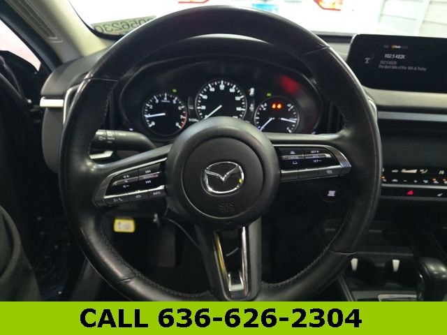 This Mazda CX-50 is well equipped with 4-Wheel Disc Brakes, 4.367 Axle Ratio, 8 Speakers, ABS brakes, Air Conditioning, Alloy wheels, AM/FM radio, AppLink/Apple CarPlay and Android Auto, Auto High-beam Headlights, Automatic temperature control, Brake assist, Bumpers: body-color, Delay-off headlights, Driver door bin, Driver vanity mirror, Dual front impact airbags, Dual front side impact airbags, Electronic Stability Control, Emergency communication system: MAZDA CONNECT, Exterior Parking Camera Rear, Front anti-roll bar, Front Bucket Seats, Front Center Armrest, Front dual zone A/C, Front reading lights, Front wheel independent suspension, Fully automatic headlights, Half Leatherette Seat Trim, Heated door mirrors, Heated Front Bucket Seats, Heated front seats, Illuminated entry, Knee airbag, Leather Shift Knob, Leather steering wheel, Low tire pressure warning, Occupant sensing airbag, Outside temperature display, Overhead airbag, Overhead console, Panic alarm, Passenger door bin, Passenger vanity mirror, Power door mirrors, Power driver seat, Power Liftgate, Power steering, Power windows, Radio data system, Radio: AM/FM/HD Audio System, Rain sensing wipers, Rear seat center armrest, Rear window defroster, Rear window wiper, Remote keyless entry, Speed control, Speed-sensing steering, Split folding rear seat, Spoiler, Steering wheel mounted audio controls, Tachometer, Telescoping steering wheel, Tilt steering wheel, Traction control, Trip computer, Turn signal indicator mirrors, Variably intermittent wipers, and Wheels: 17" x 7J Aluminum Alloy.