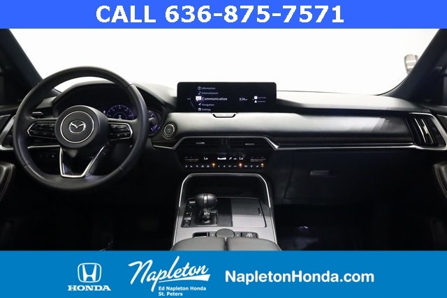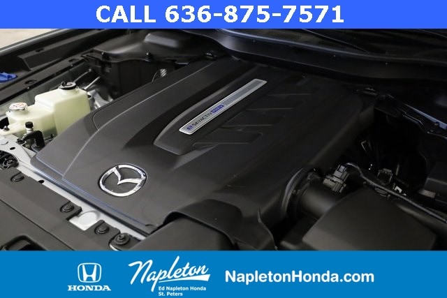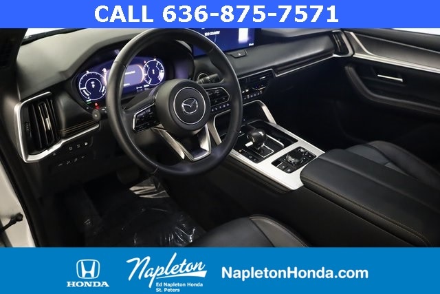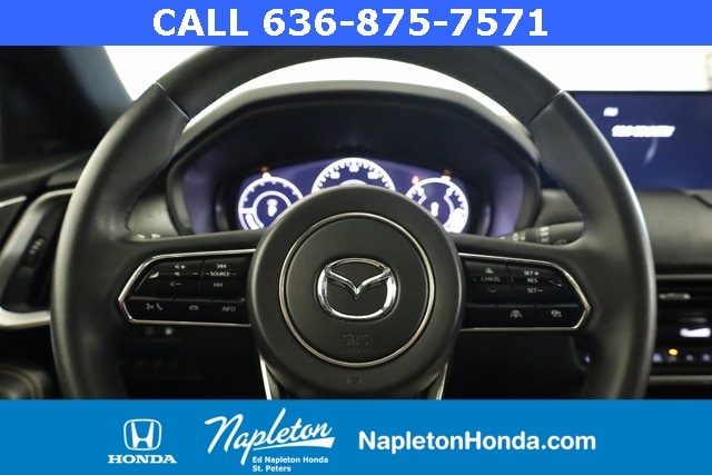 This Mazda CX-90 PHEV is well equipped with 12 Speakers, 3rd row seats: bench, 4-Wheel Disc Brakes, ABS brakes, Air Conditioning, Alloy wheels, AM/FM radio: SiriusXM, Auto High-beam Headlights, Auto-dimming door mirrors, Auto-dimming Rear-View mirror, Automatic temperature control, Brake assist, Bumpers: body-color, Compass, Delay-off headlights, Driver door bin, Driver vanity mirror, Dual front impact airbags, Dual front side impact airbags, E911 Automatic Emergency Notification, Electronic Stability Control, Emergency communication system: MAZDA CONNECT, Four wheel independent suspension, Front anti-roll bar, Front Bucket Seats, Front Center Armrest w/Storage, Front dual zone A/C, Front reading lights, Fully automatic headlights, Garage door transmitter: HomeLink, Heads-Up Display, Heated door mirrors, Heated front seats, Heated rear seats, Heated steering wheel, Heated/Ventilated Front Bucket Seats, Illuminated entry, Infotainment System Voice Command, Knee airbag, Leather Shift Knob, Leather steering wheel, Low tire pressure warning, Mazda Connected Services, Mazda Navigation System, Memory seat, Nappa Leather Seat Trim, Navigation system: MAZDA CONNECT, Occupant sensing airbag, Outside temperature display, Overhead airbag, Overhead console, Pandora Internet Radio Integration, Panic alarm, Passenger door bin, Passenger vanity mirror, Power door mirrors, Power driver seat, Power Liftgate, Power moonroof, Power passenger seat, Power steering, Power windows, Radio Broadcast Data System Program Information, Radio data system, Radio: AM/FM w/HD/Bose 12-Speaker Sound System, Rain sensing wipers, Rear air conditioning, Rear anti-roll bar, Rear reading lights, Rear window defroster, Rear window wiper, Remote keyless entry, Security system, SMS Text Msg Audio Delivery & Reply, Speed control, Speed-sensing steering, Split folding rear seat, Spoiler, Steering wheel mounted audio controls, Tachometer, Telescoping steering wheel, Tilt steering wheel, Traction control, Trip computer, Turn signal indicator mirrors, Variably intermittent wipers, Ventilated front seats, and Wheels: 21" x 9.5J Aluminum Alloy.
