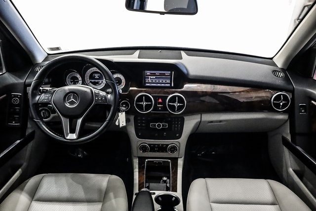 This GLK is well equipped with 19" 5 Triple Spoke Wheels, 3.67 Axle Ratio, 4-Wheel Disc Brakes, 6 Speakers, ABS brakes, Air Conditioning, Alloy wheels, AM/FM radio, Anti-whiplash front head restraints, Auto tilt-away steering wheel, Automatic temperature control, Bodyside moldings, Brake assist, Bumpers: body-color, CD player, Child-Seat-Sensing Airbag, Delay-off headlights, Driver door bin, Driver vanity mirror, Dual front impact airbags, Dual front side impact airbags, Electronic Stability Control, Emergency communication system: mbrace2, Four wheel independent suspension, Front anti-roll bar, Front Bucket Seats, Front Center Armrest, Front dual zone A/C, Front reading lights, Fully automatic headlights, Genuine wood console insert, Genuine wood dashboard insert, Genuine wood door panel insert, Heated door mirrors, Illuminated entry, Knee airbag, Leather Shift Knob, Leather steering wheel, Low tire pressure warning, MB-Tex Upholstery, Memory seat, Occupant sensing airbag, Outside temperature display, Overhead airbag, Panic alarm, Passenger door bin, Passenger vanity mirror, Power adjustable front head restraints, Power door mirrors, Power driver seat, Power passenger seat, Power steering, Power windows, Premium audio system: COMAND®, Radio data system, Radio: AM/FM CD w/MP3 Capability, Rear anti-roll bar, Rear fog lights, Rear seat center armrest, Rear window defroster, Rear window wiper, Remote keyless entry, Roof rack: rails only, Security system, Speed control, Speed-sensing steering, Split folding rear seat, Steering wheel memory, Steering wheel mounted audio controls, Tachometer, Telescoping steering wheel, Tilt steering wheel, Traction control, Trip computer, Turn signal indicator mirrors, Variably intermittent wipers, and Weather band radio.