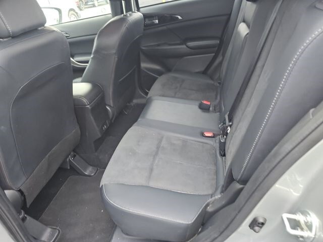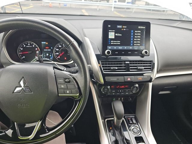 This Eclipse Cross is well equipped with 4-Wheel Disc Brakes, 6 Speakers, 6.386 Axle Ratio, ABS brakes, Air Conditioning, Alloy wheels, AM/FM radio: SiriusXM, Android Auto & Apple CarPlay, Auto High-beam Headlights, Auto-dimming Rear-View mirror, Automatic temperature control, Blind Spot Warning, Brake assist, Bumpers: body-color, Delay-off headlights, Driver door bin, Driver vanity mirror, Dual front impact airbags, Dual front side impact airbags, Electronic Stability Control, Emergency communication system, Exterior Parking Camera Rear, Four wheel independent suspension, Front anti-roll bar, Front Bucket Seats, Front Center Armrest, Front dual zone A/C, Front fog lights, Front reading lights, Fully automatic headlights, Heated door mirrors, Heated Front Bucket Seats, Heated front seats, Illuminated entry, Knee airbag, Low tire pressure warning, Navigation System, Occupant sensing airbag, Outside temperature display, Overhead airbag, Overhead console, Panic alarm, Passenger door bin, Passenger vanity mirror, Power door mirrors, Power driver seat, Power Liftgate, Power steering, Power windows, Radio data system, Radio: AM/FM 8.0" Nav System w/Smartphone-Link, Rain sensing wipers, Rear anti-roll bar, Rear seat center armrest, Rear window defroster, Rear window wiper, Remote keyless entry, Security system, Speed control, Speed-sensing steering, Split folding rear seat, Spoiler, Steering wheel mounted audio controls, Tachometer, Telescoping steering wheel, Tilt steering wheel, Traction control, Trip computer, Turn signal indicator mirrors, Variably intermittent wipers, and Wheels: 18" x 7J Two-Tone Alloy.
