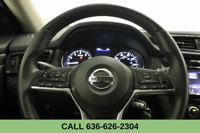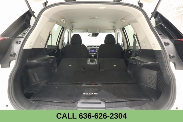 This Rogue is well equipped with Special Edition Package (17" Aluminum Alloy Wheels, Chrome Interior Door Handles, Chrome Outside Door Handles, Heated Driver & Front Passenger Seats, Heated Outside Mirrors, Leather-Wrapped Shift Knob, Leather-Wrapped Steering Wheel, Privacy Glass, Roof Rails, and Special Edition Badge), 4 Speakers, 4-Wheel Disc Brakes, 6.386 Axle Ratio, ABS brakes, Air Conditioning, AM/FM radio: SiriusXM, Anti-whiplash front head restraints, Auto High-beam Headlights, Black Splash Guards (Set of 4), Blind Spot Warning, Brake assist, Bumpers: body-color, CD player, Cloth Seat Trim, Delay-off headlights, Driver door bin, Driver vanity mirror, Dual front impact airbags, Dual front side impact airbags, Electronic Stability Control, First Aid Kit, Floor Mats & 2-PC Cargo Area Protector, Four wheel independent suspension, Front anti-roll bar, Front Bucket Seats, Front Center Armrest w/Storage, Front reading lights, Fully automatic headlights, Illuminated entry, Low tire pressure warning, NissanConnect featuring Apple CarPlay and Android Auto, Occupant sensing airbag, Outside temperature display, Overhead airbag, Overhead console, Panic alarm, Passenger door bin, Passenger vanity mirror, Power door mirrors, Power steering, Power windows, Radio data system, Radio: AM/FM/CD/AUX, Rear anti-roll bar, Rear seat center armrest, Rear window defroster, Rear window wiper, Remote keyless entry, Security system, Speed control, Speed-sensing steering, Split folding rear seat, Spoiler, Steering wheel mounted audio controls, Tachometer, Telescoping steering wheel, Tilt steering wheel, Traction control, Trip computer, Variably intermittent wipers, and Wheels: 17" Steel w/Full Covers.