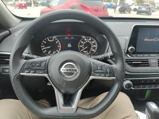 This Altima is well equipped with CVT with Xtronic, 4-Wheel Disc Brakes, 6 Speakers, ABS brakes, Air Conditioning, AM/FM radio: SiriusXM, Brake assist, Bumpers: body-color, Cloth Seat Trim, Delay-off headlights, Driver door bin, Driver vanity mirror, Dual front impact airbags, Dual front side impact airbags, Electronic Stability Control, Floor Mats & Trunk Mat, Four wheel independent suspension, Front anti-roll bar, Front Bucket Seats, Front Center Armrest, Front reading lights, Fully automatic headlights, Illuminated entry, Knee airbag, Low tire pressure warning, NissanConnect featuring Apple CarPlay and Android Auto, Occupant sensing airbag, Outside temperature display, Overhead airbag, Overhead console, Panic alarm, Passenger door bin, Passenger vanity mirror, Power door mirrors, Power driver seat, Power steering, Power windows, Radio data system, Radio: AM/FM Audio System, Rear anti-roll bar, Rear reading lights, Rear seat center armrest, Rear side impact airbag, Rear window defroster, Remote keyless entry, Security system, Speed control, Speed-sensing steering, Speed-Sensitive Wipers, Split folding rear seat, Sport steering wheel, Steering wheel mounted audio controls, Tachometer, Telescoping steering wheel, Tilt steering wheel, Traction control, Trip computer, Variably intermittent wipers, and Wheels: 16" x 7" Steel w/Full Wheel Covers.