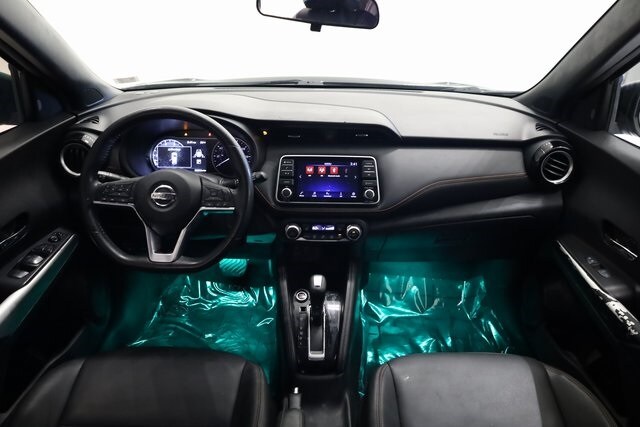 This Kicks is well equipped with SR Premium Package (Bose Personal Plus Audio System, Heated Front Seats, Prima-Tex Appointed Seat Trim, and Security System), 17" Alloy Wheels, 3.927 Axle Ratio, 6 Speakers, ABS brakes, Air Conditioning, Alloy wheels, AM/FM radio: SiriusXM, Auto High-beam Headlights, Automatic temperature control, Blind Spot Warning, Brake assist, Bumpers: body-color, Carpeted Floor Mats w/Cargo Mat, Center Armrest w/Storage, Cloth Seat Trim, Compass, Delay-off headlights, Driver door bin, Driver vanity mirror, Driver's Seat Mounted Armrest, Dual front impact airbags, Dual front side impact airbags, Electronic Stability Control, Exterior Parking Camera Rear, Front anti-roll bar, Front Bucket Seats, Front fog lights, Front reading lights, Front wheel independent suspension, Fully automatic headlights, Heated door mirrors, Illuminated entry, Knee airbag, Leather Shift Knob, Low tire pressure warning, NissanConnect featuring Apple CarPlay and Android Auto, Occupant sensing airbag, Outside temperature display, Overhead airbag, Panic alarm, Passenger door bin, Passenger vanity mirror, Power door mirrors, Power steering, Power windows, Radio data system, Radio: AM/FM Audio System, Rear Parking Sensors, Rear reading lights, Rear Roof Spoiler, Rear side impact airbag, Rear window defroster, Rear window wiper, Remote keyless entry, Roof rack: rails only, Speed control, Splash Guards Grain (4 Piece), Split folding rear seat, Spoiler, Sport steering wheel, Steering wheel mounted audio controls, Tachometer, Telescoping steering wheel, Tilt steering wheel, Traction control, Trip computer, Turn signal indicator mirrors, Variably intermittent wipers, and Wheels: 17" Black Alloy.