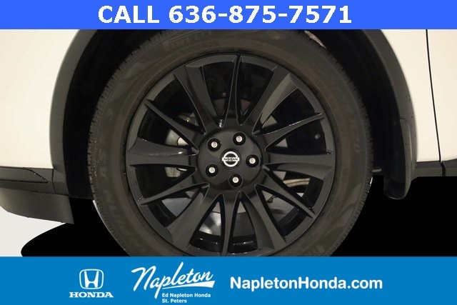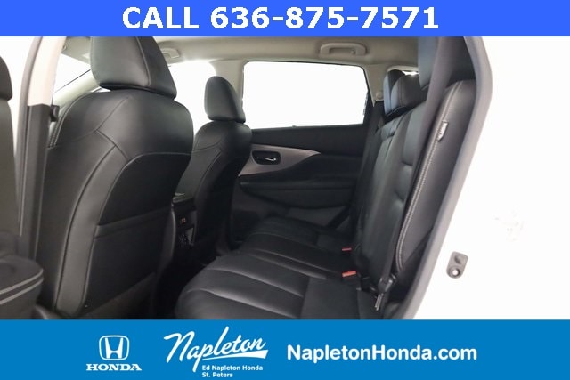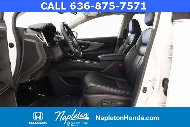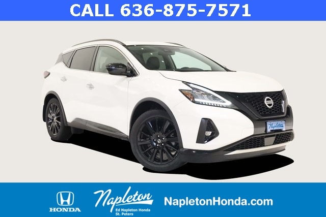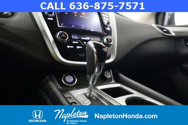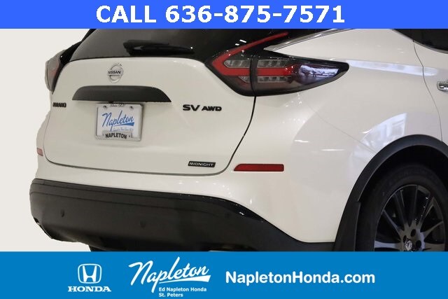 This Murano is well equipped with SV Midnight Edition Package (20" Wheels, Illuminated Kickplates, Midnight Edition Badge, Splash Guards, and Wheels: 20" Gloss Black Alloy), CVT with Xtronic, AWD, 4-Wheel Disc Brakes, 4.667 Axle Ratio, 6 Speakers, ABS brakes, Air Conditioning, Alloy wheels, AM/FM radio: SiriusXM, AM/FM/CD/MP3/WMA Audio System, Auto High-beam Headlights, Auto-dimming Rear-View mirror, Automatic temperature control, Blind Spot Warning, Brake assist, Bumpers: body-color, CD player, Child-Seat-Sensing Airbag, Delay-off headlights, Driver door bin, Driver vanity mirror, Dual front impact airbags, Dual front side impact airbags, Electronic Stability Control, Four wheel independent suspension, Front anti-roll bar, Front Bucket Seats, Front Center Armrest, Front dual zone A/C, Front fog lights, Front reading lights, Fully automatic headlights, Heated door mirrors, Heated Front Bucket Seats, Heated front seats, Illuminated entry, Knee airbag, Leatherette-Appointed Seat Trim, Low tire pressure warning, Midnight Edition Carpeted Floor Mats, NissanConnect featuring Apple CarPlay and Android Auto, Occupant sensing airbag, Outside temperature display, Overhead airbag, Overhead console, Panic alarm, Passenger door bin, Passenger vanity mirror, Power door mirrors, Power driver seat, Power passenger seat, Power steering, Power windows, Radio data system, Rear anti-roll bar, Rear reading lights, Rear seat center armrest, Rear side impact airbag, Rear window defroster, Rear window wiper, Remote keyless entry, Roof rack: rails only, Security system, Speed control, Speed-sensing steering, Speed-Sensitive Wipers, Splash Guards & Illuminated Kick Plates, Split folding rear seat, Spoiler, Steering wheel mounted audio controls, Tachometer, Telescoping steering wheel, Tilt steering wheel, Traction control, Trip computer, Turn signal indicator mirrors, Variably intermittent wipers, and Wheels: 18" Machined Aluminum-Alloy.