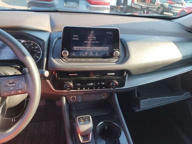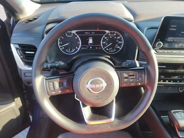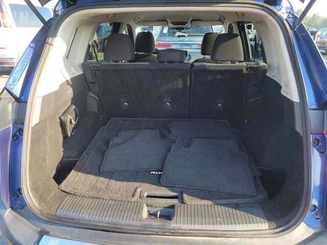 This Rogue is well equipped with AWD, 18" Aluminum Alloy Wheels, 4-Wheel Disc Brakes, 5.604 Axle Ratio, 6 Speakers, ABS brakes, Air Conditioning, Alloy wheels, AM/FM Radio, AM/FM radio: SiriusXM, Auto High-beam Headlights, Automatic temperature control, Black Splash Guards (Set of 4), Brake assist, Bumpers: body-color, Chrome Rear Bumper Protector, Cloth Seat Trim, Delay-off headlights, Driver door bin, Driver vanity mirror, Dual front impact airbags, Dual front side impact airbags, Electronic Stability Control, Emergency communication system: NissanConnect Services, First Aid Kit, Floor Mats w/1-Piece Cargo Area Protector, Four wheel independent suspension, Front anti-roll bar, Front Bucket Seats, Front Center Armrest, Front dual zone A/C, Front reading lights, Fully automatic headlights, Heated door mirrors, Illuminated entry, Knee airbag, Low tire pressure warning, NissanConnect featuring Apple CarPlay and Android Auto, Occupant sensing airbag, Outside temperature display, Overhead airbag, Overhead console, Panic alarm, Passenger door bin, Passenger vanity mirror, Power door mirrors, Power driver seat, Power steering, Power windows, Radio data system, Rear anti-roll bar, Rear Parking Sensors, Rear seat center armrest, Rear side impact airbag, Rear window defroster, Rear window wiper, Remote keyless entry, Security system, Speed control, Speed-Sensitive Wipers, Split folding rear seat, Spoiler, Steering wheel mounted audio controls, Tachometer, Telescoping steering wheel, Tilt steering wheel, Traction control, Trip computer, Turn signal indicator mirrors, and Variably intermittent wipers.