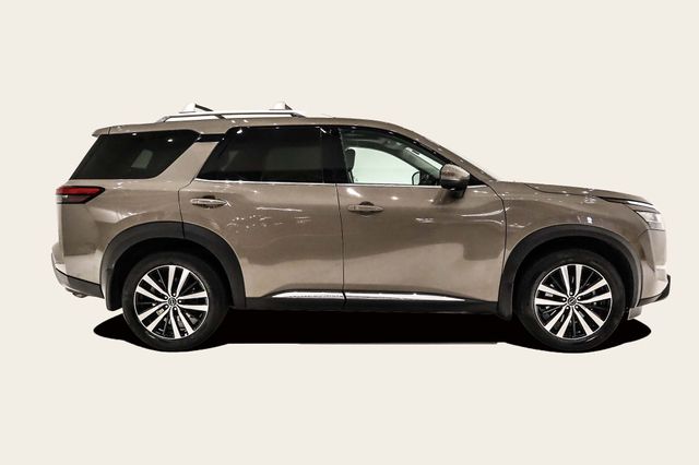 Elevating the driving experience, the Pathfinder Platinum boasts a host of advanced features, including a state-of-the-art navigation system, a premium Bose audio system, and a heads-up display that puts critical information right in your line of sight. The intelligent all-wheel-drive system ensures confident handling in any weather, while the spacious and versatile interior offers seating for up to eight passengers and ample cargo space for all your adventures.