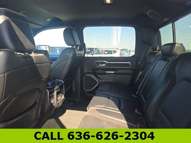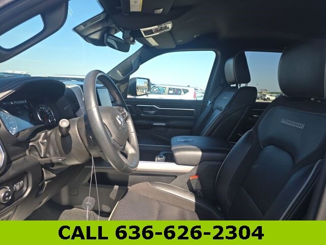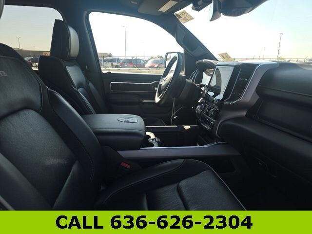 This 1500 is well equipped with Laramie Level II Equipment Group (2nd Row In Floor Storage Bins, 4G LTE Wi-Fi Hot Spot, 8.4" Touchscreen Display, All R1 High Radios, All Radio Equipped Vehicles, Apple CarPlay, Auto High Beam Headlamp Control, Blind Spot & Cross Path Detection, Connected Travel & Traffic Services, Connectivity - US/Canada, Disassociated Touchscreen Display, Foam Bottle Insert (Door Trim Panel), For Details, Visit DriveUconnect.com, For More Info, Call 800-643-2112, Global Telematics Box Module (TBM), Google Android Auto, GPS Antenna Input, GPS Navigation, HD Radio, Integrated Center Stack Radio, Integrated Voice Command w/Bluetooth, ParkSense Front/Rear Park Assist w/Stop, Radio: Uconnect 5 Nav w/8.4" Display, Rain Sensitive Windshield Wipers, Remote Tailgate Release, SiriusXM Radio Service, SiriusXM w/360L, USB Host Flip, and Wireless Charging Pad), Night Edition (#1 Seat Foam Cushion, 3 Rear Seat Head Restraints, 4 Way Front Headrests, Accent Color Premium Power Mirrors, Auto-Dimming Exterior Driver Mirror, Black Exterior Truck Badging, Black Headlamp Bezels, Black Interior Accents, Black Painted Exterior Mirrors Caps, Body Color Door Handles, Body Color Front Bumper, Body Color Rear Bumper w/Step Pads, Bucket Seats, Convex Wide-Angle Mirror Insert, Delete LED Lamp - Floor Console Bin, Driver Seat Memory, Dual Exhaust w/Black Tips, Exterior Mirrors Courtesy Lamps, Exterior Mirrors w/Heating Element, Exterior Mirrors w/Memory, Exterior Mirrors w/Supplemental Signals, Front Seat Back Map Pockets, Full Length Upgraded Floor Console, Grille Surround 3 Black Texture 2 Black, Heated Front Seats, Heated Steering Wheel, Leather Trimmed Bucket Seats, Mopar Black Tubular Side Steps, Power 2-Way Driver Lumbar Adjust, Power 2-Way Passenger Lumbar Adjust, Power 8-Way Driver & Passenger Seats, Power-Folding Mirrors, Rear 60/40 Folding Seat, Sport Performance Hood, Twill Film Appliques, and Ventilated Front Seats), Quick Order Package 25H Laramie, 10 Speakers, 3.21 Rear Axle Ratio, 4-Wheel Disc Brakes, 48V Belt Starter Generator, ABS brakes, Adjustable pedals, Air Conditioning, Alloy wheels, AM/FM radio: SiriusXM, Anti-Spin Differential Rear Axle, Apple CarPlay/Android Auto, Audio memory, Auto-dimming door mirrors, Auto-dimming Rear-View mirror, Automatic temperature control, Brake assist, Bumpers: chrome, Chrome Exterior Mirrors, Compass, Delay-off headlights, Driver door bin, Driver vanity mirror, Dual front impact airbags, Dual front side impact airbags, Electronic Stability Control, F