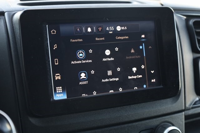 This ProMaster 2500 is well equipped with Quick Order Package 22A, 4 Speakers, 4-Wheel Disc Brakes, 4.08 Axle Ratio, ABS brakes, Air Conditioning, AM/FM radio, Apple CarPlay/Android Auto, Black/Gray Seats, Bodyside moldings, Brake assist, Center Wheel Cap, Chrome Front Grille, Cloth Bucket Seats, Deep Tint Sunscreen Glass, Driver door bin, Driver Seat Armrest, Driver's Seat Mounted Armrest, Electronic Stability Control, Front anti-roll bar, Front Bucket Seats, Front Fog Lamps, Front License Plate Bracket, Front reading lights, Front wheel independent suspension, Heavy Duty Suspension, Illuminated entry, Low tire pressure warning, Manual Folding Exterior Mirrors, Manufacturer's Statement of Origin, Outside temperature display, Overhead airbag, Overhead console, ParkView Rear Back-Up Camera, Passenger Bucket Seat, Passenger door bin, Power steering, Power windows, Radio: Uconnect 5 w/7" Display, Rear Hinged Doors w/Fixed Glass, Rear View Day/Night Mirror, Remote keyless entry, Speed Control, Steering wheel mounted audio controls, Tachometer, Telescoping steering wheel, Traction control, Trip computer, Turn signal indicator mirrors, Variably intermittent wipers, and Wheels: 16" x 6.0" Steel.