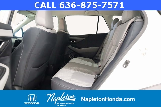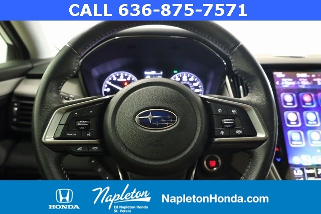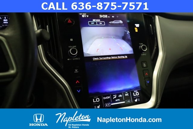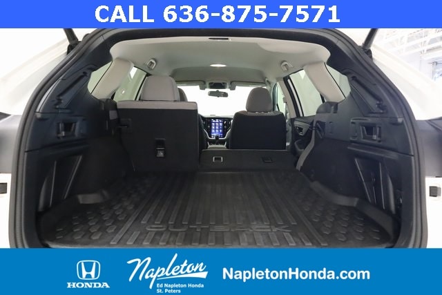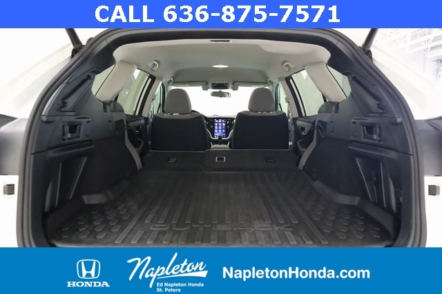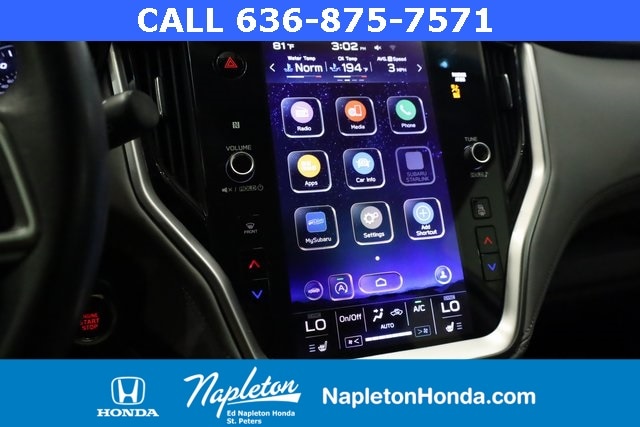 This Outback is well equipped with BSD w/RCTA & Keyless Access & Push Button Start (Blind Spot Detection (BSD), Hands-Free Power Rear Gate, Keyless Access w/Push Button Start, and Rear Cross Traffic Alert (RCTA)), 3.90 Axle Ratio, 4-Wheel Disc Brakes, 6 Speakers, ABS brakes, Air Conditioning, Alloy wheels, AM/FM radio: SiriusXM, Auto High-beam Headlights, Automatic temperature control, Brake assist, Bumpers: body-color, Cloth Upholstery, Driver door bin, Driver vanity mirror, Dual front impact airbags, Dual front side impact airbags, Electronic Stability Control, Emergency communication system: STARLINK Safety and Security (Subscription Required), Exterior Parking Camera Rear, Four wheel independent suspension, Front anti-roll bar, Front Bucket Seats, Front Center Armrest w/Storage, Front dual zone A/C, Front fog lights, Front reading lights, Fully automatic headlights, Heated door mirrors, Heated Front Bucket Seats, Heated front seats, Illuminated entry, Knee airbag, Leather steering wheel, Low tire pressure warning, Occupant sensing airbag, Outside temperature display, Overhead airbag, Overhead console, Panic alarm, Passenger door bin, Passenger vanity mirror, Power door mirrors, Power driver seat, Power steering, Power windows, Radio: Subaru STARLINK 11.6" Multimedia Plus Sys, Rear anti-roll bar, Rear seat center armrest, Rear window defroster, Rear window wiper, Remote keyless entry, Roof rack, Security system, Speed control, Speed-sensing steering, Split folding rear seat, Spoiler, STARLINK/Apple CarPlay/Android Auto, Steering wheel mounted audio controls, Steering Wheel Paddle Shift Control Switches, Tachometer, Telescoping steering wheel, Tilt steering wheel, Traction control, Trip computer, Turn signal indicator mirrors, Variably intermittent wipers, and Wheels: 17" x 7J Black Aluminum Alloy.