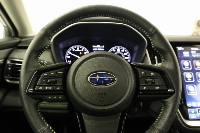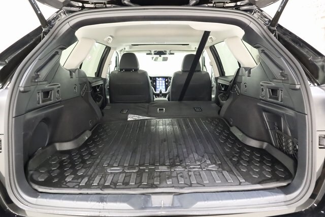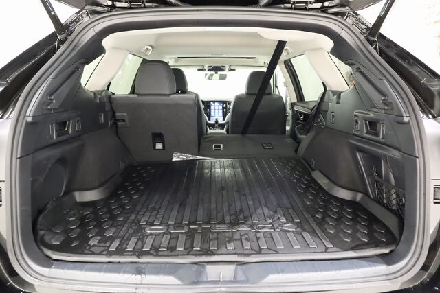 This Outback is well equipped with Standard Model, 12 Speakers, 4-Wheel Disc Brakes, ABS brakes, Air Conditioning, All-Weather Floor Liners, Alloy wheels, AM/FM radio: SiriusXM with 360L, Apple CarPlay & Android Auto, Auto High-beam Headlights, Auto-Dimming Exterior Mirror w/Approach Light, Auto-dimming Rear-View mirror, Automatic temperature control, Brake assist, Bumpers: body-color, Compass, Crystal Black Silica Body Side Molding, Driver door bin, Driver vanity mirror, Dual front impact airbags, Dual front side impact airbags, Electronic Stability Control, Emergency communication system: MySubaru Safety (3-year free trial), Exterior Parking Camera Rear, Four wheel independent suspension, Front anti-roll bar, Front Bucket Seats, Front Center Armrest w/Storage, Front dual zone A/C, Front fog lights, Front reading lights, Fully automatic headlights, Garage door transmitter: HomeLink, harman/kardon® Speakers, Heated door mirrors, Heated Front Bucket Seats, Heated front seats, Heated steering wheel, Illuminated entry, Knee airbag, Leather Shift Knob, Leather steering wheel, LED Upgrade, Low tire pressure warning, Occupant sensing airbag, Outside temperature display, Overhead airbag, Overhead console, Panic alarm, Passenger door bin, Passenger vanity mirror, Power door mirrors, Power driver seat, Power Liftgate, Power moonroof, Power steering, Power windows, Radio: Subaru 11.6" Multimedia Plus System, Rear anti-roll bar, Rear seat center armrest, Rear window defroster, Rear window wiper, Remote keyless entry, Roof rack, Security system, Speed control, Speed-sensing steering, Split folding rear seat, Spoiler, StarTex-Trimmed Upholstery, Steering wheel mounted audio controls, Tachometer, Telescoping steering wheel, Tilt steering wheel, Traction control, Trip computer, Turn signal indicator mirrors, Variably intermittent wipers, and Wheels: 18" x 7J Black Aluminum-Alloy.