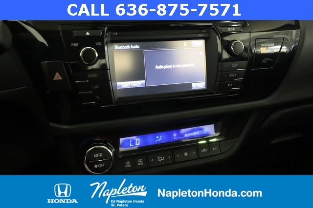 This Corolla is well equipped with 16" x 6.5" Steel Wheels, 4-Wheel Disc Brakes, 6 Speakers, ABS brakes, Air Conditioning, AM/FM radio, Automatic temperature control, Brake assist, Bumpers: body-color, CD player, Delay-off headlights, Driver door bin, Driver vanity mirror, Dual front impact airbags, Dual front side impact airbags, Electronic Stability Control, Exterior Parking Camera Rear, Front anti-roll bar, Front Bucket Seats, Front Center Armrest w/Storage, Front fog lights, Front reading lights, Front Sport Bucket Seats, Front wheel independent suspension, Heated door mirrors, Illuminated entry, Knee airbag, Leather steering wheel, Low tire pressure warning, Occupant sensing airbag, Outside temperature display, Overhead airbag, Panic alarm, Passenger door bin, Passenger vanity mirror, Power door mirrors, Power steering, Power windows, Radio data system, Radio: AM/FM/CD Player w/6.1" Touch Screen, Rear anti-roll bar, Rear seat center armrest, Rear window defroster, Remote keyless entry, Speed control, Speed-sensing steering, Split folding rear seat, Spoiler, Sport Fabric Seat Trim, Steering wheel mounted audio controls, Tachometer, Telescoping steering wheel, Tilt steering wheel, Traction control, Trip computer, and Turn signal indicator mirrors.