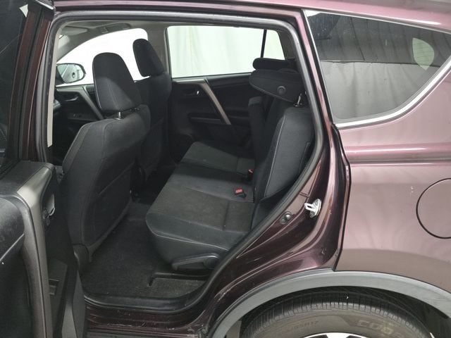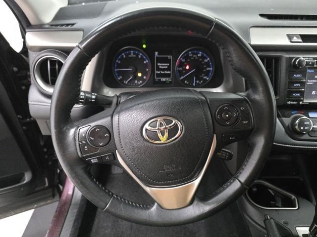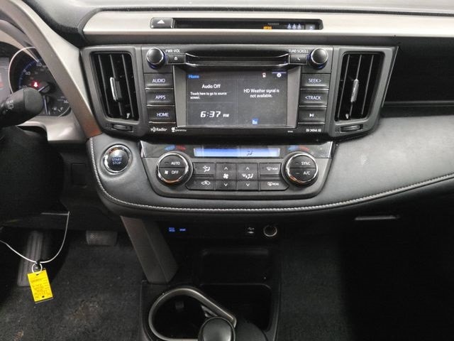 This RAV4 is well equipped with AWD, Black w/SofTex Seat Trim, 4-Wheel Disc Brakes, 4.071 Axle Ratio, 6 Speakers, ABS brakes, Air Conditioning, Alloy wheels, AM/FM radio, Auto High-beam Headlights, Automatic temperature control, Brake assist, Bumpers: body-color, CD player, Driver door bin, Driver vanity mirror, Dual front impact airbags, Dual front side impact airbags, Electronic Stability Control, Exterior Parking Camera Rear, Fabric Seat Trim, Four wheel independent suspension, Front & Back Clearance Sonar, Front anti-roll bar, Front Bucket Seats, Front Center Armrest, Front dual zone A/C, Front fog lights, Front reading lights, Front Sport Seats, Fully automatic headlights, Heated door mirrors, Illuminated entry, Knee airbag, Leather steering wheel, Low tire pressure warning, Occupant sensing airbag, Outside temperature display, Overhead airbag, Overhead console, Panic alarm, Passenger door bin, Passenger vanity mirror, Power door mirrors, Power moonroof, Power steering, Power windows, Radio data system, Radio: Entune AM/FM/CD/MP3/WMA Playback w/6 Speakers, Radio: Entune Premium Audio with Navigation, Rear anti-roll bar, Rear seat center armrest, Rear window defroster, Rear window wiper, Remote keyless entry, Speed control, Speed-sensing steering, Split folding rear seat, Spoiler, Steering wheel mounted audio controls, Tachometer, Telescoping steering wheel, Tilt steering wheel, Traction control, Trip computer, Turn signal indicator mirrors, Variably intermittent wipers, and Wheels: 17" 5-Spoke Superchrome Alloy.