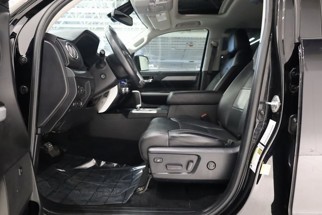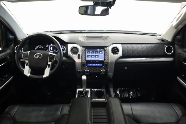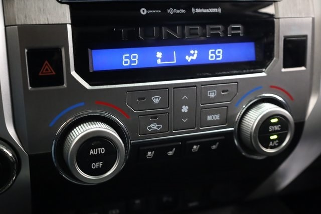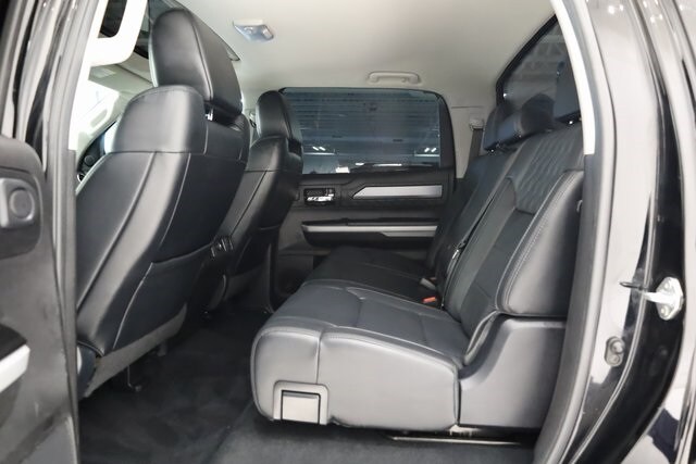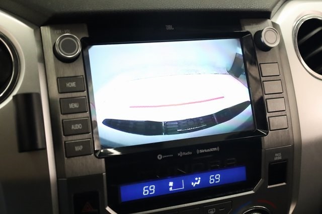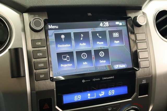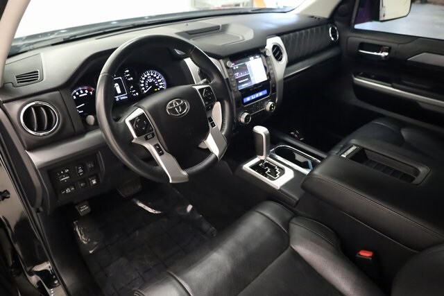 This Tundra is well equipped with 4WD, Black w/Leather Seat Trim, 12 Speakers, 4-Wheel Disc Brakes, 4.30 Axle Ratio, ABS brakes, Air Conditioning, Alloy wheels, AM/FM radio: SiriusXM, Apple CarPlay/Android Auto, Auto High-beam Headlights, Auto-dimming door mirrors, Auto-dimming Rear-View mirror, Automatic temperature control, Brake assist, Bumpers: body-color, Compass, Delay-off headlights, Driver door bin, Driver vanity mirror, Dual front impact airbags, Dual front side impact airbags, Electronic Stability Control, Emergency communication system: Safety Connect with 1-year trial, Exterior Parking Camera Rear, Front anti-roll bar, Front Bucket Seats, Front Center Armrest, Front dual zone A/C, Front fog lights, Front reading lights, Front wheel independent suspension, Fully automatic headlights, Garage door transmitter: HomeLink, Heated & Ventilated Front Bucket Seats, Heated door mirrors, Heated front seats, Illuminated entry, Knee airbag, Leather Seat Trim (LE), Low tire pressure warning, Memory seat, Navigation system: Dynamic Navigation (3-year trial), Occupant sensing airbag, Outside temperature display, Overhead airbag, Overhead console, Panic alarm, Passenger door bin, Passenger vanity mirror, Power door mirrors, Power driver seat, Power passenger seat, Power steering, Power windows, Radio data system, Radio: Premium JBL Audio w/Dynamic Navigation, Rear reading lights, Rear seat center armrest, Rear step bumper, Rear window defroster, Remote Connect, Remote keyless entry, Safety Connect, Security system, Service Connect, SiriusXM Radio, Speed control, Speed-sensing steering, Split folding rear seat, Steering wheel memory, Steering wheel mounted audio controls, Tachometer, Telescoping steering wheel, Tilt steering wheel, Traction control, Trip computer, Turn signal indicator mirrors, Variably intermittent wipers, Ventilated front seats, Voltmeter, and Wheels: 20" 6-Spoke Alloy w/Accented Spokes.