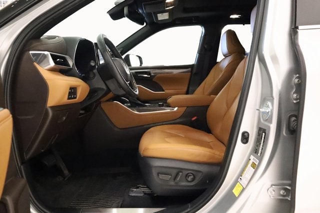 This Highlander is well equipped with AWD, 11 Speakers, 20" Painted Alloy Wheels, 3.003 Axle Ratio, 3rd row seats: split-bench, 4-Wheel Disc Brakes, ABS brakes, Air Conditioning, Alloy wheels, AM/FM radio: SiriusXM, Apple CarPlay/Android Auto, Auto High-beam Headlights, Auto-dimming Rear-View mirror, Automatic temperature control, Brake assist, Bumpers: body-color, Delay-off headlights, Digital Rearview Mirror w/HomeLink, Driver door bin, Driver vanity mirror, Dual front impact airbags, Dual front side impact airbags, Electronic Stability Control, Emergency communication system: Safety Connect with 1-year trial, Four wheel independent suspension, Front anti-roll bar, Front Bucket Seats, Front Center Armrest, Front dual zone A/C, Front fog lights, Front reading lights, Fully automatic headlights, Garage door transmitter: HomeLink, Heads-Up Display, Heated door mirrors, Heated front seats, Heated rear seats, Heated steering wheel, Heated/Ventilated Front Bucket Seats, High Grade LED Projector Headlights, Illuminated entry, Knee airbag, Leather Seat Trim, Leather Shift Knob, Low tire pressure warning, Memory seat, Navigation system: Dynamic Navigation (3-year trial), Occupant sensing airbag, Outside temperature display, Overhead airbag, Overhead console, Panic alarm, Panoramic Moonroof, Panoramic View Monitor, Passenger door bin, Passenger vanity mirror, Power door mirrors, Power driver seat, Power Liftgate, Power moonroof, Power passenger seat, Power steering, Power windows, Radio: Premium Audio w/JBL Clari-Fi, Rain sensing wipers, Rear air conditioning, Rear anti-roll bar, Rear reading lights, Rear window defroster, Rear window wiper, Reclining 3rd row seat, Remote keyless entry, Roof rack: rails only, Security system, Speed control, Speed-sensing steering, Split folding rear seat, Spoiler, Steering wheel mounted audio controls, Tachometer, Telescoping steering wheel, Tilt steering wheel, Traction control, Trip computer, Turn signal indicator mirrors, Variably intermittent wipers, and Ventilated front seats.