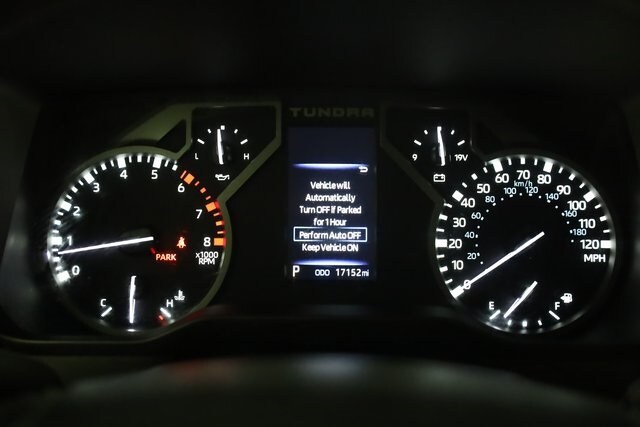 This Tundra is well equipped with 4WD, Boulder w/Fabric Seat Trim (FB) or SofTex Seat Trim or Fabric Seat Trim, 18" Alloy Wheels, 3.31 Axle Ratio, 4-Way Adjustable Front Bucket Seats, 4-Wheel Disc Brakes, 9 Speakers, ABS brakes, Air Conditioning, Alloy wheels, AM/FM radio: SiriusXM, Apple CarPlay/Android Auto, Auto High-beam Headlights, Automatic temperature control, Brake assist, Bumpers: body-color, Delay-off headlights, Driver door bin, Driver vanity mirror, Dual front impact airbags, Dual front side impact airbags, Electronic Stability Control, Emergency communication system: Safety Connect (10-year trial), Exterior Parking Camera Rear, Fabric Seat Trim (FB), Front anti-roll bar, Front Bucket Seats, Front Center Armrest, Front fog lights, Front reading lights, Front wheel independent suspension, Fully automatic headlights, Heated door mirrors, Illuminated entry, Knee airbag, Low tire pressure warning, Occupant sensing airbag, Outside temperature display, Overhead airbag, Overhead console, Panic alarm, Passenger door bin, Passenger vanity mirror, Power door mirrors, Power steering, Power windows, Radio data system, Radio: Audio Multimedia System, Rear reading lights, Rear step bumper, Rear window defroster, Remote keyless entry, Safety Connect, Security system, Speed control, Speed-sensing steering, Split folding rear seat, Steering wheel mounted audio controls, Tachometer, Telescoping steering wheel, Tilt steering wheel, Traction control, Trip computer, Variably intermittent wipers, and Voltmeter.