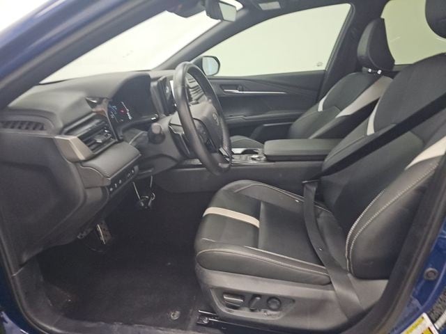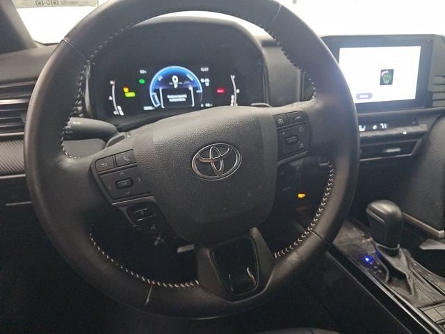 This Camry is well equipped with 2.5L 4-Cylinder 16V DOHC, Black w/Leather Seat Trim, ABS brakes, Active Cruise Control, Alloy wheels, Electronic Stability Control, Front dual zone A/C, Heated door mirrors, Illuminated entry, Low tire pressure warning, Remote keyless entry, Traction control, 4-Wheel Disc Brakes, 6 Speakers, Air Conditioning, AM/FM radio: SiriusXM, Apple CarPlay/Android Auto, Auto High-beam Headlights, Automatic temperature control, Brake assist, Bumpers: body-color, Delay-off headlights, Driver door bin, Driver vanity mirror, Dual front impact airbags, Dual front side impact airbags, Emergency communication system: Safety Connect (up to 10-year trial subscription), Exterior Parking Camera Rear, Four wheel independent suspension, Front anti-roll bar, Front Bucket Seats, Front Center Armrest, Front reading lights, Fully automatic headlights, Knee airbag, Leather Shift Knob, Leather steering wheel, Occupant sensing airbag, Outside temperature display, Overhead airbag, Overhead console, Panic alarm, Passenger door bin, Passenger vanity mirror, Power door mirrors, Power driver seat, Power steering, Power windows, Radio data system, Radio: Toyota Audio Multimedia w/8" Touchscreen, Rear anti-roll bar, Rear reading lights, Rear seat center armrest, Rear side impact airbag, Rear window defroster, Security system, SofTex & Fabric Seat Trim, Speed control, Speed-sensing steering, Split folding rear seat, Spoiler, Steering wheel mounted audio controls, Telescoping steering wheel, Tilt steering wheel, Trip computer, Turn signal indicator mirrors, Variably intermittent wipers, and Wheels: 18" Black-Finished Alloy.