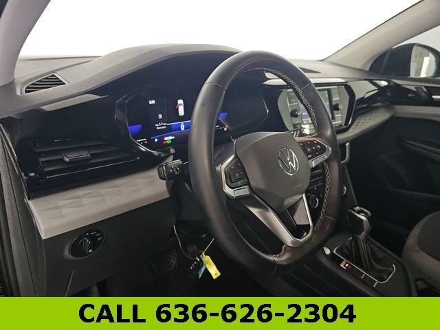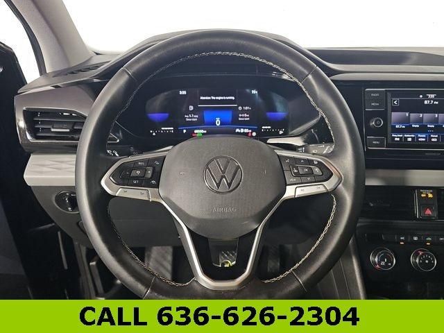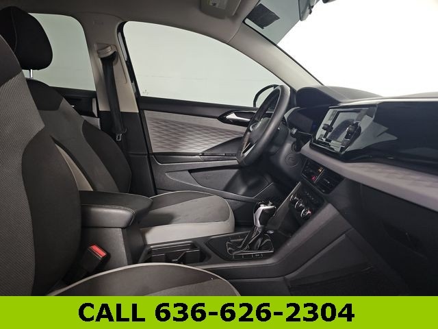 This Taos is well equipped with IQ.DRIVE S Package (Active Blind Spot Monitor, Adaptive Cruise Control (ACC) w/Stop & Go, Emergency Assist, Front Assist, Hands-On Detection Sensor Steering Wheel, Lane Assist (Lane Keeping System), Rear Traffic Alert, and Travel Assist (Semi-Automated Driving Assistance)), S Convenience Package (Automatic Rain-Sensing Front Wipers, Heated Leatherette-Wrapped Steering Wheel, Leather-Trimmed Shifter, and Light Assist (High Beam Control)), 17" Silver Alloy Wheels, 3.23 Axle Ratio, 4-Wheel Disc Brakes, 6 Speakers, ABS brakes, Air Conditioning, Alloy wheels, AM/FM radio, Brake assist, Bumpers: body-color, Cloth Seating Surfaces, Compass, Delay-off headlights, Driver door bin, Driver vanity mirror, Dual front impact airbags, Dual front side impact airbags, Electronic Stability Control, Emergency communication system: Car-Net, Exterior Parking Camera Rear, First Aid Kit, Front anti-roll bar, Front Bucket Seats, Front Center Armrest, Front reading lights, Front Strut Rear Torsion Beam Suspension, Front wheel independent suspension, Fully automatic headlights, Illuminated entry, Low tire pressure warning, Occupant sensing airbag, Outside temperature display, Overhead airbag, Overhead console, Panic alarm, Passenger door bin, Passenger vanity mirror, Power door mirrors, Power steering, Power windows, Radio data system, Radio: Composition Color AM/FM, Rear anti-roll bar, Rear seat center armrest, Rear window defroster, Rear window wiper, Remote keyless entry, Roadside Assistance Kit, Roof rack: rails only, Rubber Mats Kit (DISC), Speed control, Speed-sensing steering, Split folding rear seat, Spoiler, Steering wheel mounted audio controls, Tachometer, Telescoping steering wheel, Tilt steering wheel, Traction control, Trip computer, Variably intermittent wipers, and VW Care.