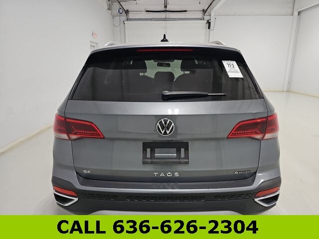 NAPLETON OFF LEASE, conveniently located at 4798 N Service Road in St. Peters, Missouri â" just one mile east of I-70 and Mid Rivers Mall Drive, is proud to offer this 2022 Volkswagen Taos SE AWD. This CARFAX Certified vehicle comes from a prior lease and still has the balance of its factory warranty, providing added peace of mind. Equipped with the Panoramic Sunroof Package and IQ.DRIVE SE Package, it offers advanced driver-assistance features including adaptive cruise control, lane-keeping assist, blind-spot monitoring, and forward collision warning with automatic emergency braking. Additional features include push-button start, remote keyless entry, heated front seats, VW Digital Cockpit, 8-inch touchscreen infotainment with Apple CarPlay and Android Auto, premium audio system, LED headlights and taillights, roof rails, and all-wheel drive for confident handling in all weather conditions. Visit Napleton Off Lease in St. Peters, MO today to experience this stylish, safe, and fully loaded 2022 VW Taos SE AWD, or call to schedule your test drive before itâs gone!.