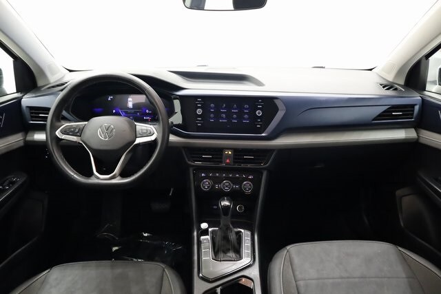 This Taos is well equipped with 3.23 Axle Ratio, 4-Wheel Disc Brakes, 6 Speakers, ABS brakes, Active Blind Spot Monitor, Air Conditioning, Alloy wheels, AM/FM radio: SiriusXM with 360L, Auto High-beam Headlights, Automatic temperature control, Brake assist, Bumpers: body-color, CloudTex & Cloth Seating Surfaces, Compass, Delay-off headlights, Driver door bin, Driver vanity mirror, Dual front impact airbags, Dual front side impact airbags, Electronic Stability Control, Emergency communication system: VW Car-Net Safe & Secure 5-year, Exterior Parking Camera Rear, Front anti-roll bar, Front Bucket Seats, Front Center Armrest, Front dual zone A/C, Front reading lights, Front Strut Rear Torsion Beam Suspension, Front wheel independent suspension, Fully automatic headlights, Heated door mirrors, Heated Front Bucket Seats, Heated front seats, Heated steering wheel, Illuminated entry, Leather Shift Knob, Low tire pressure warning, Occupant sensing airbag, Outside temperature display, Overhead airbag, Overhead console, Panic alarm, Passenger door bin, Passenger vanity mirror, Power door mirrors, Power driver seat, Power steering, Power windows, Radio data system, Radio: MIB3 Composition Media AM/FM/HD, Rain sensing wipers, Rear anti-roll bar, Rear seat center armrest, Rear window defroster, Rear window wiper, Remote keyless entry, Roof rack: rails only, Security system, Speed control, Speed-sensing steering, Split folding rear seat, Spoiler, Steering wheel mounted audio controls, Tachometer, Telescoping steering wheel, Tilt steering wheel, Traction control, Trip computer, Variably intermittent wipers, and Wheels: 18" 2-Tone Machined Alloy.